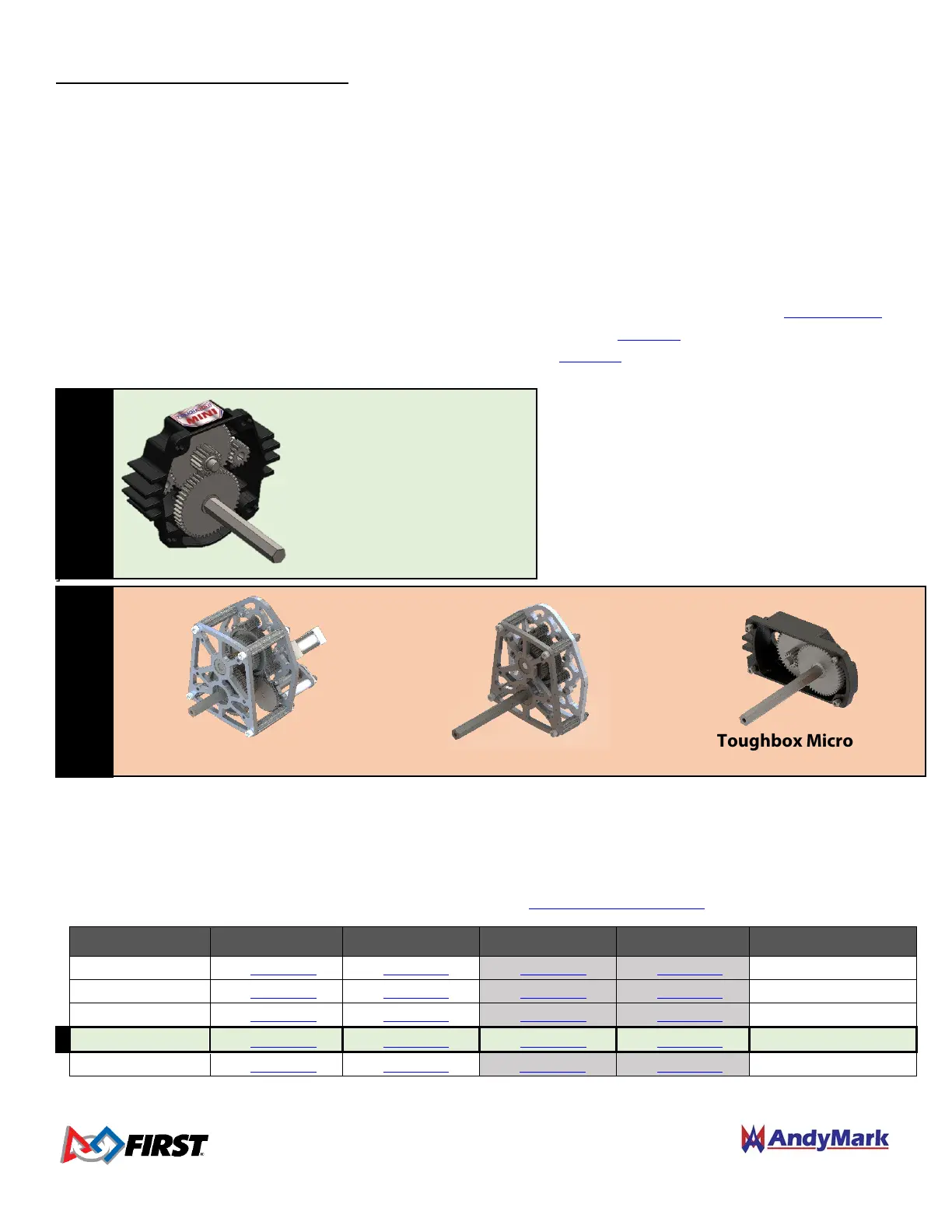 More information about these optional gears can be found at "AndyMark.com/TBmini