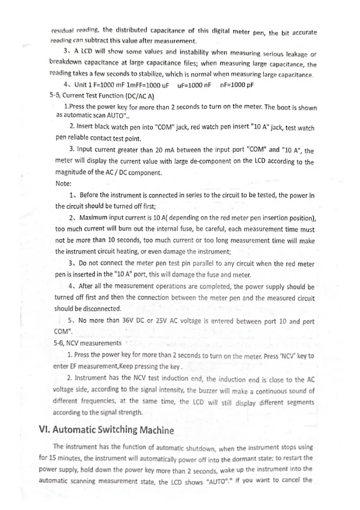 Aneng M118A - AC;DC Current Measurement; NCV Measurement; Automatic Shutdown Function
