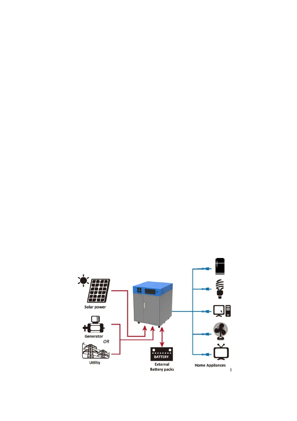 The following illustration shows basic application for this inverter/charger. It also includes following devices to