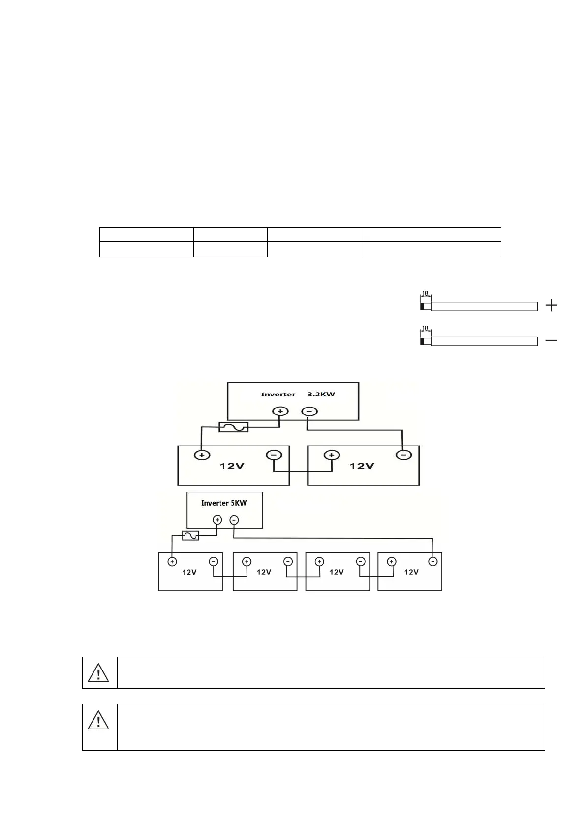 WARNING! It's very important for system safety and efficient operation to use appropriate cable for battery
