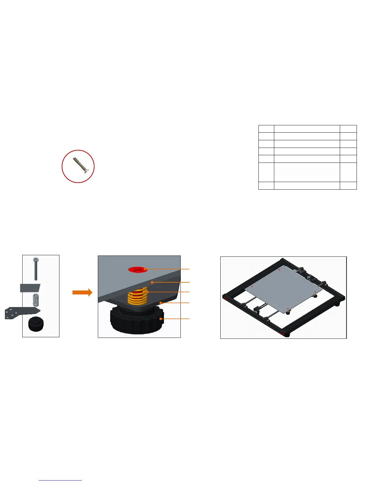 Attention: Fix the hot bed on the heating bed support in sequence as shown in the picture.