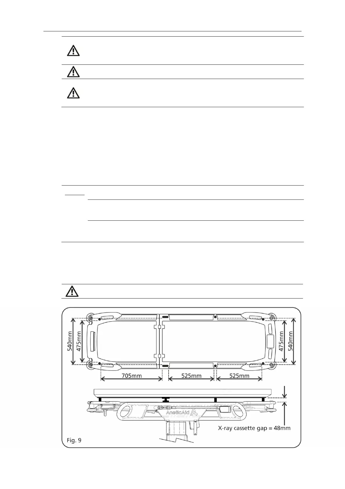 accident and emergency departments and includes: a raised x-ray radiolucent platform