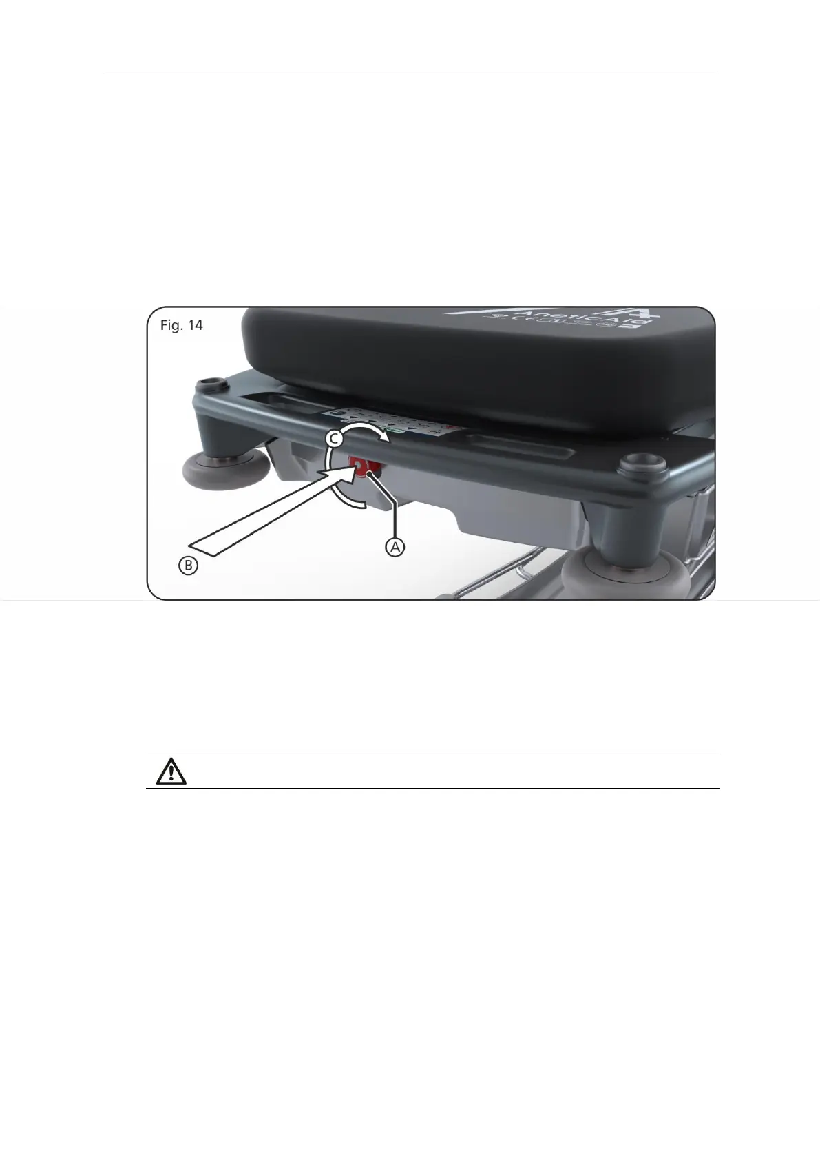 The emergency stop button is located at the foot end of the trolley beneath the user