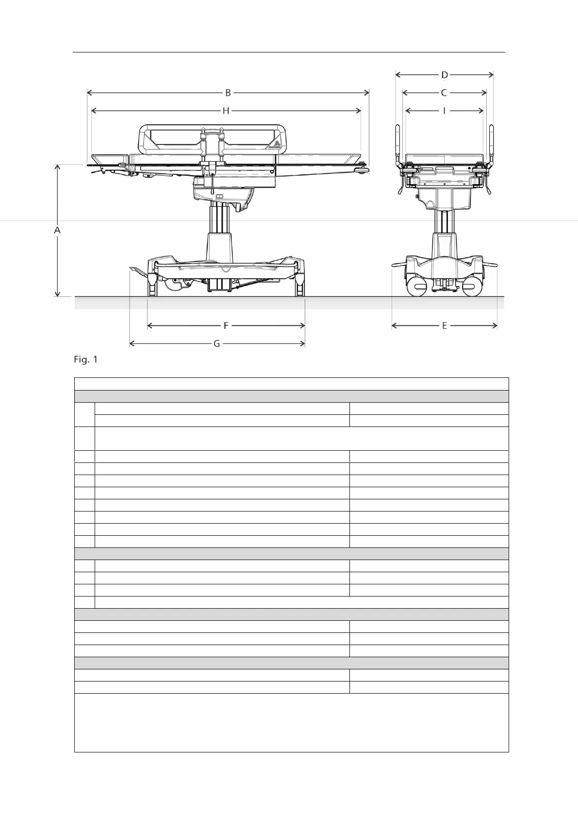 NOTE: Height is measured from the floor to the patient platform and does not include