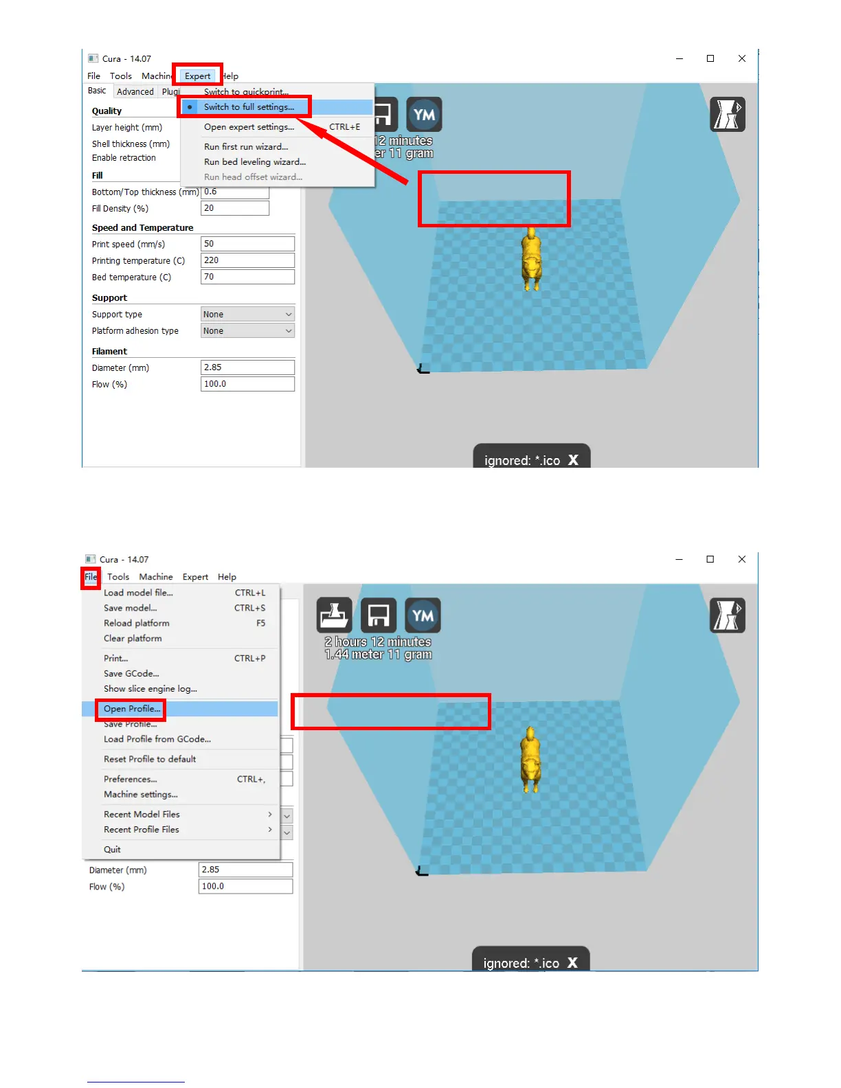 Open fileA8 Cura 14.07.ini