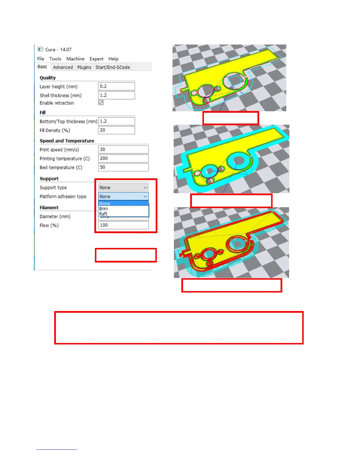 adhesive tape is good. Please choose Brim when the model is small . Choosing Raft makes it