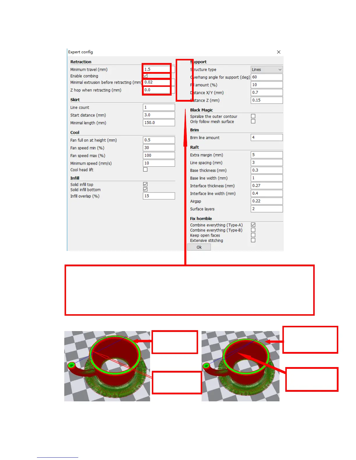 2. Enable Combing: Digital for surface quality , the nozzle will try not to go through surface ,