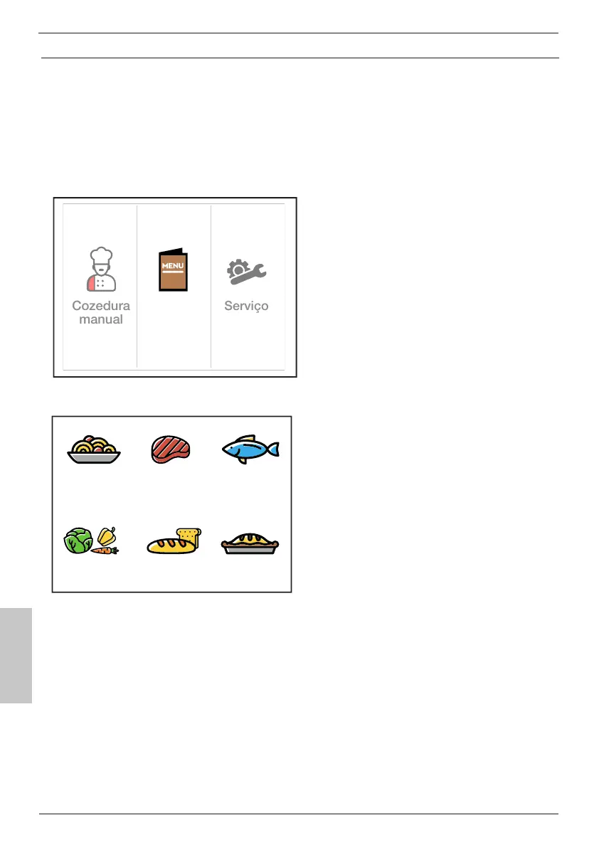 O menu Receitas permite aceder aos programas de cozimento memo-