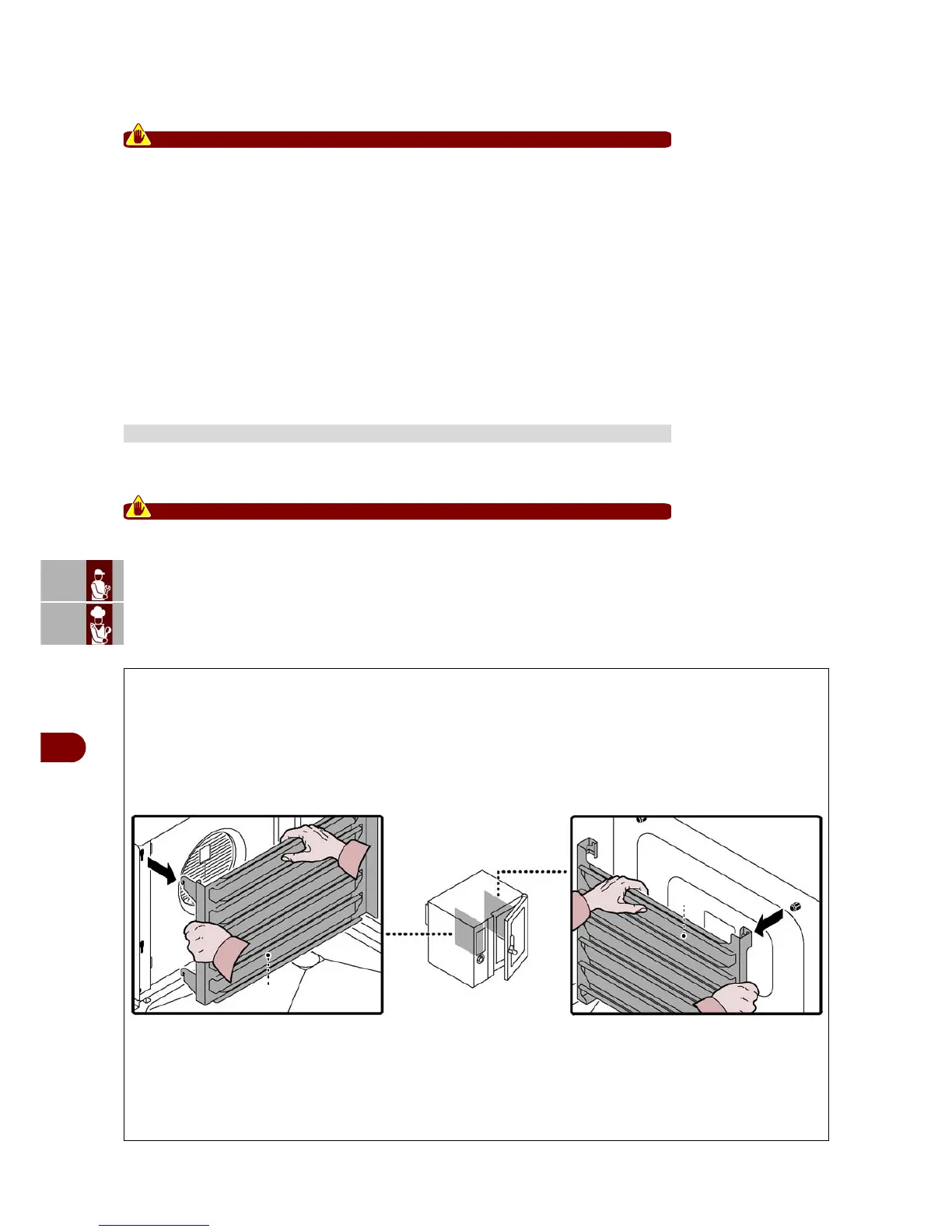 2–Estrarre dall'interno del forno i telai portateglie (A-B) e pulirli accuratamente.