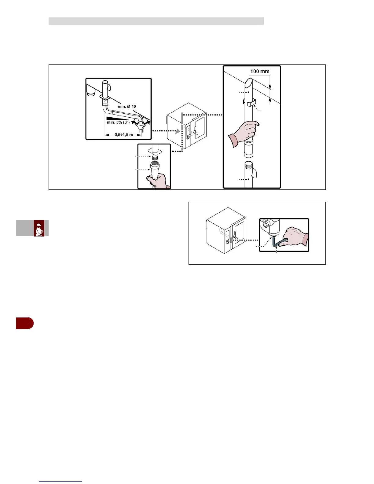 2–Das Entlüftungsrohr (C) an das Anschlussrohr (D) des Geräts anschließen und an