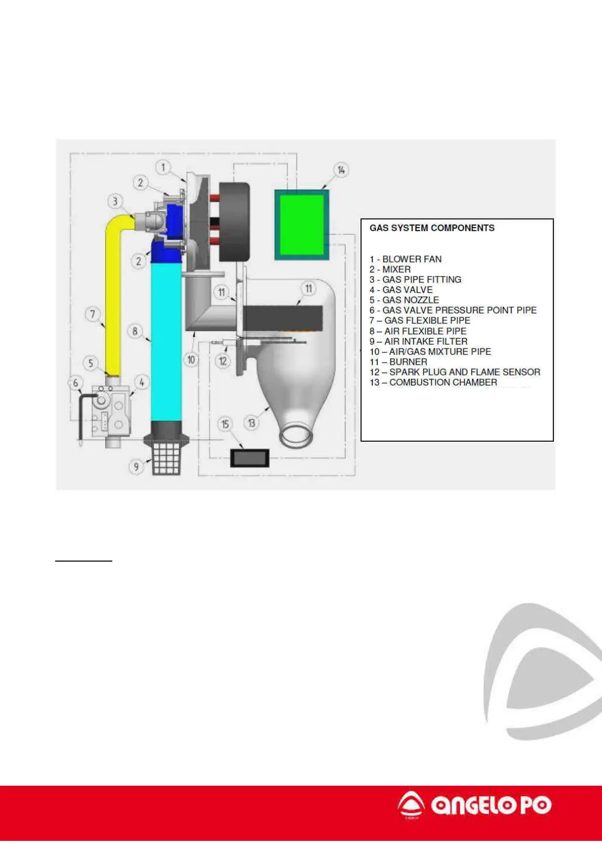 The picture shows all the components of the gas system.