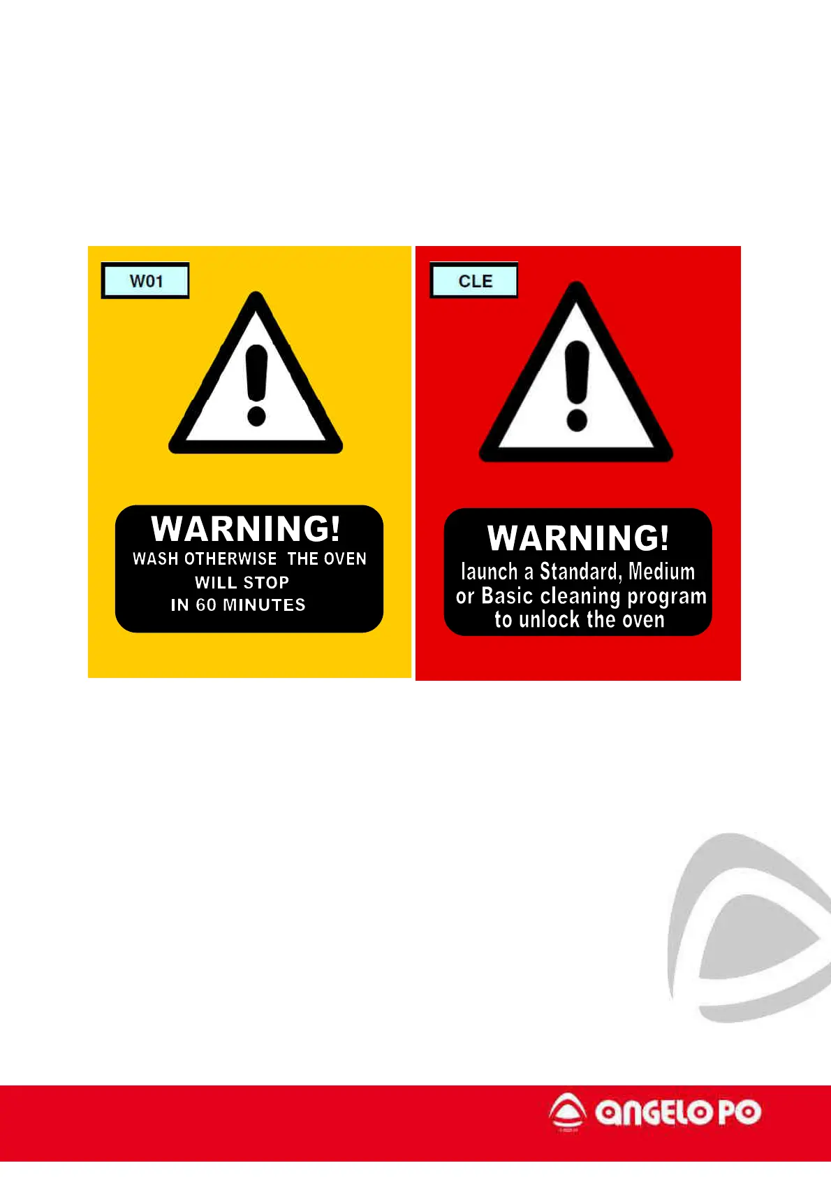 The blockage screen appears after a time set by user, by which you must clean the oven.