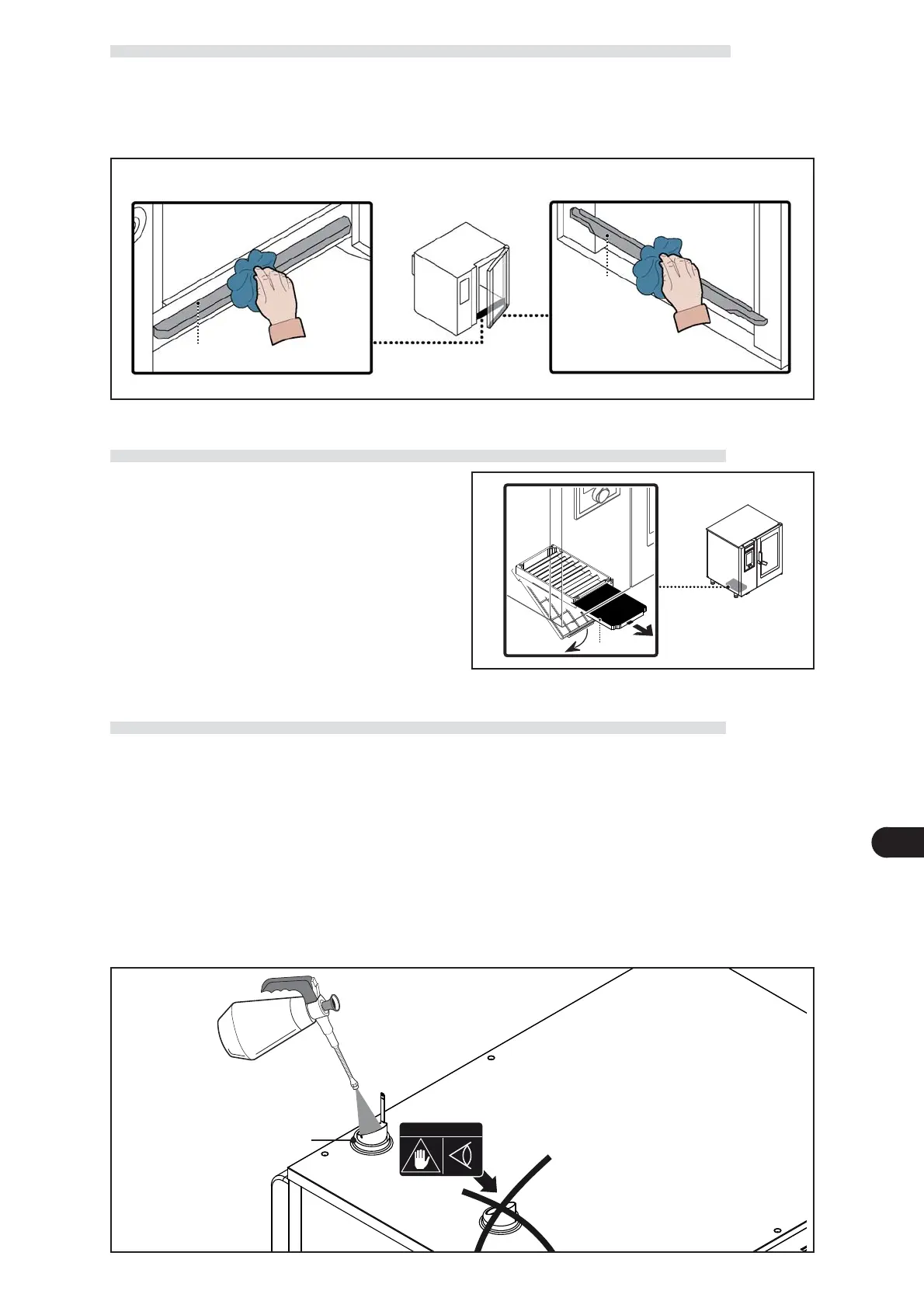 ) Das Innere der Garkammer abspülen oder alternativ dazu ein automatisches Spülprogramm