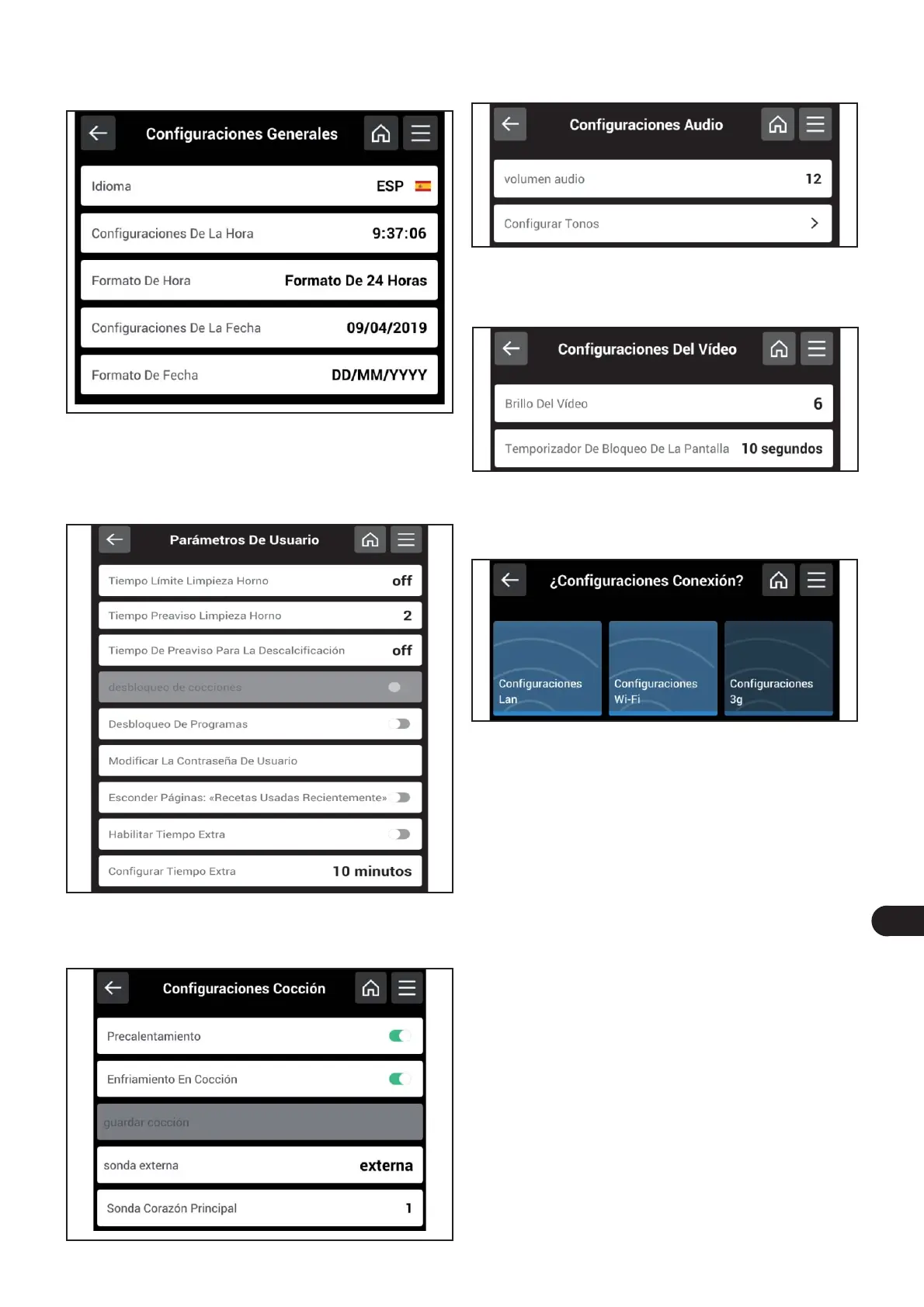 cionar o modi car los parámetros presentes en la pantalla.