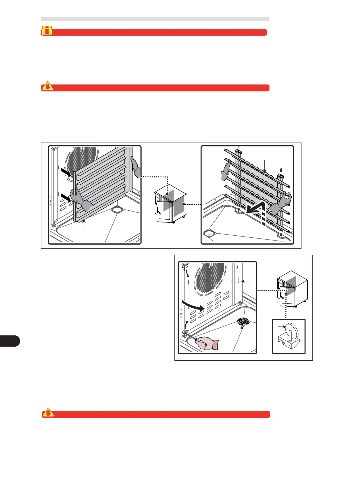 traer del horno las estructuras portabandejas (A-B) y limpiarlas con cuidado.