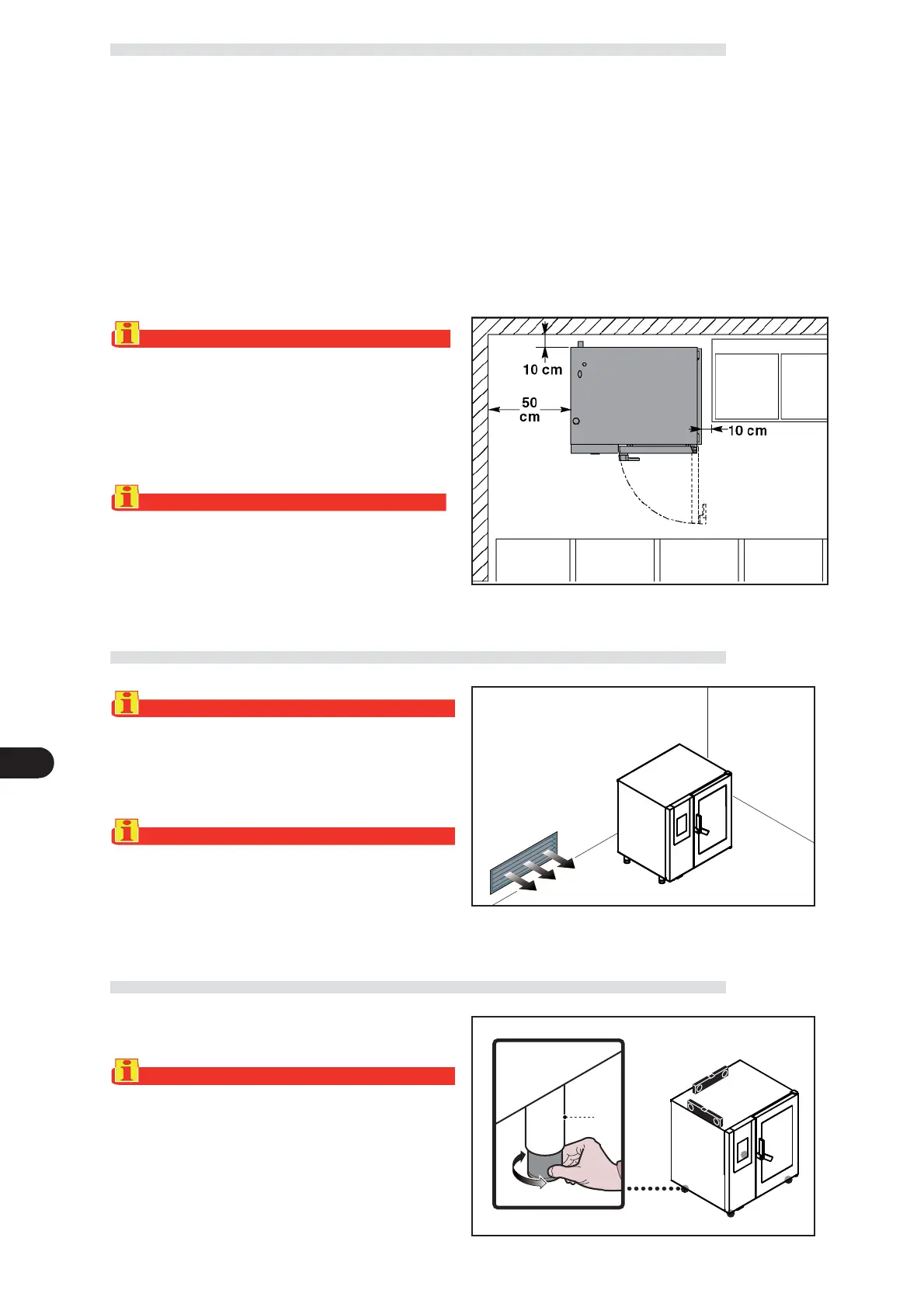 La zona di installazione deve essere provvista di tutti gli allacciamenti di alimentazione, ventila-