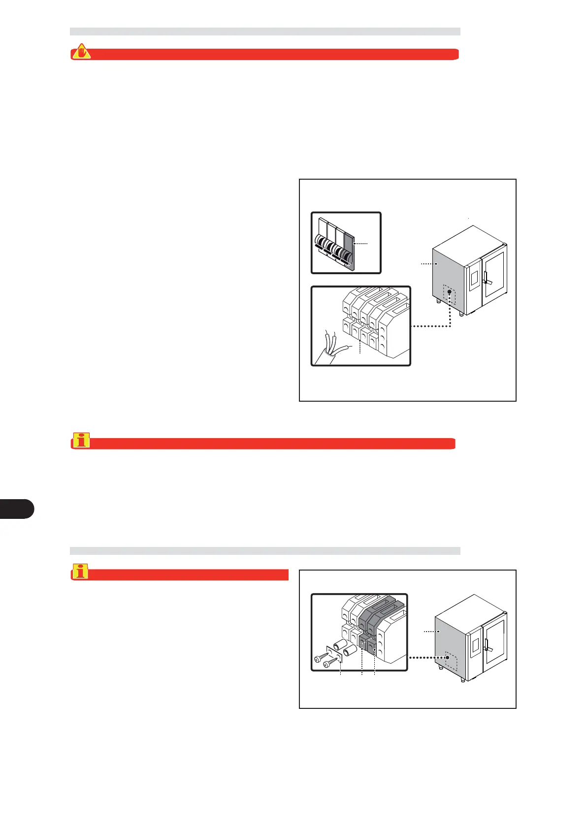 The appliance is supplied with operating voltage of 400V/3N/PE which can be switched to