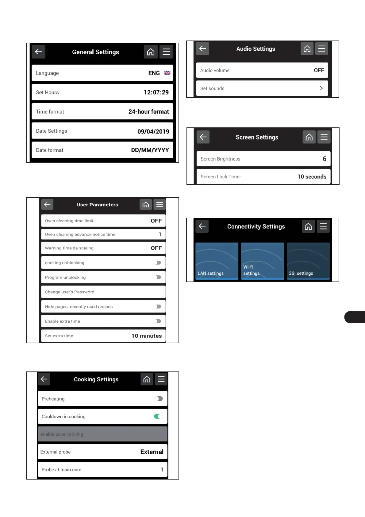 If “Cooking settings” is selected, the following screen will