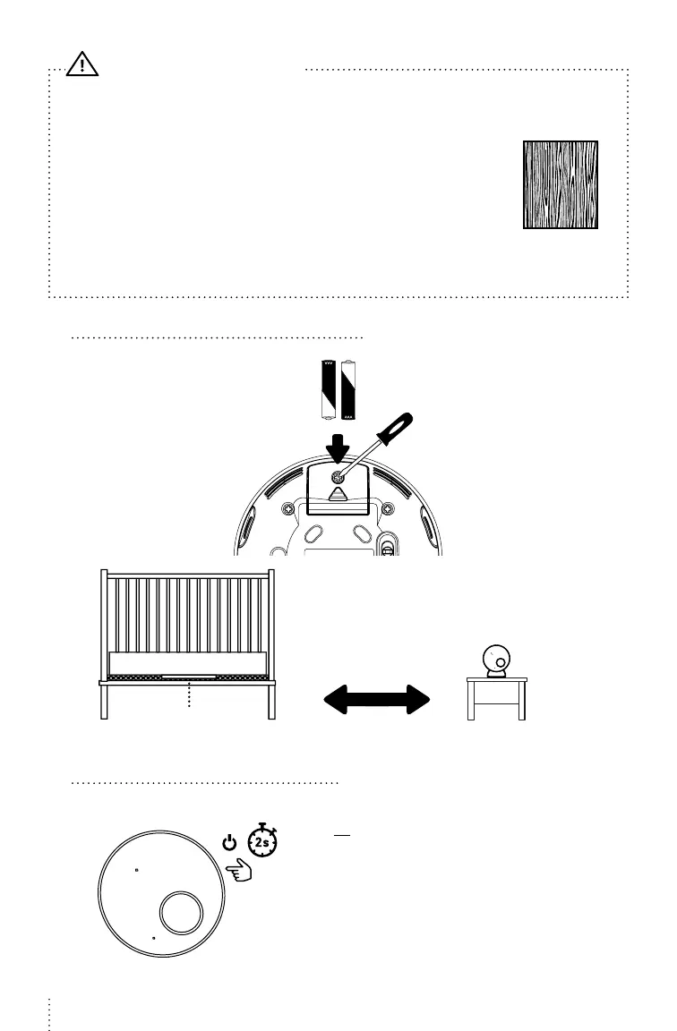 Het bewegingsdetectoralarm gaat na enkele seconden af als de baby niet in bed ligt.