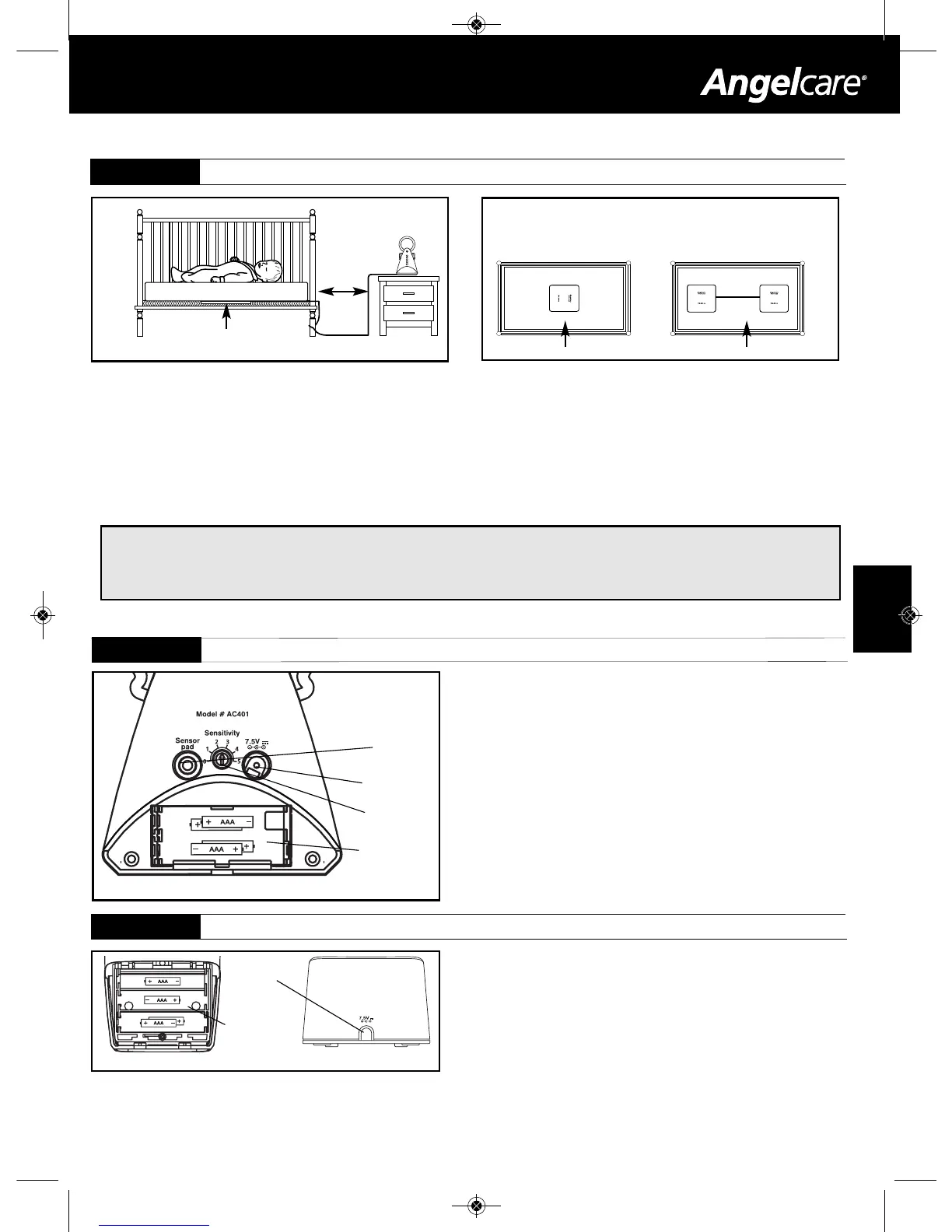 • Insert 4 AAA regular batteries (not included) into nursery unit (for battery