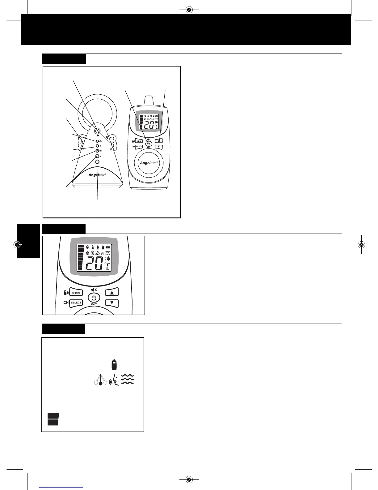 • Alle programmeerbare functies van uw Angelcare® monitor zijn bereikbaar via de MENU