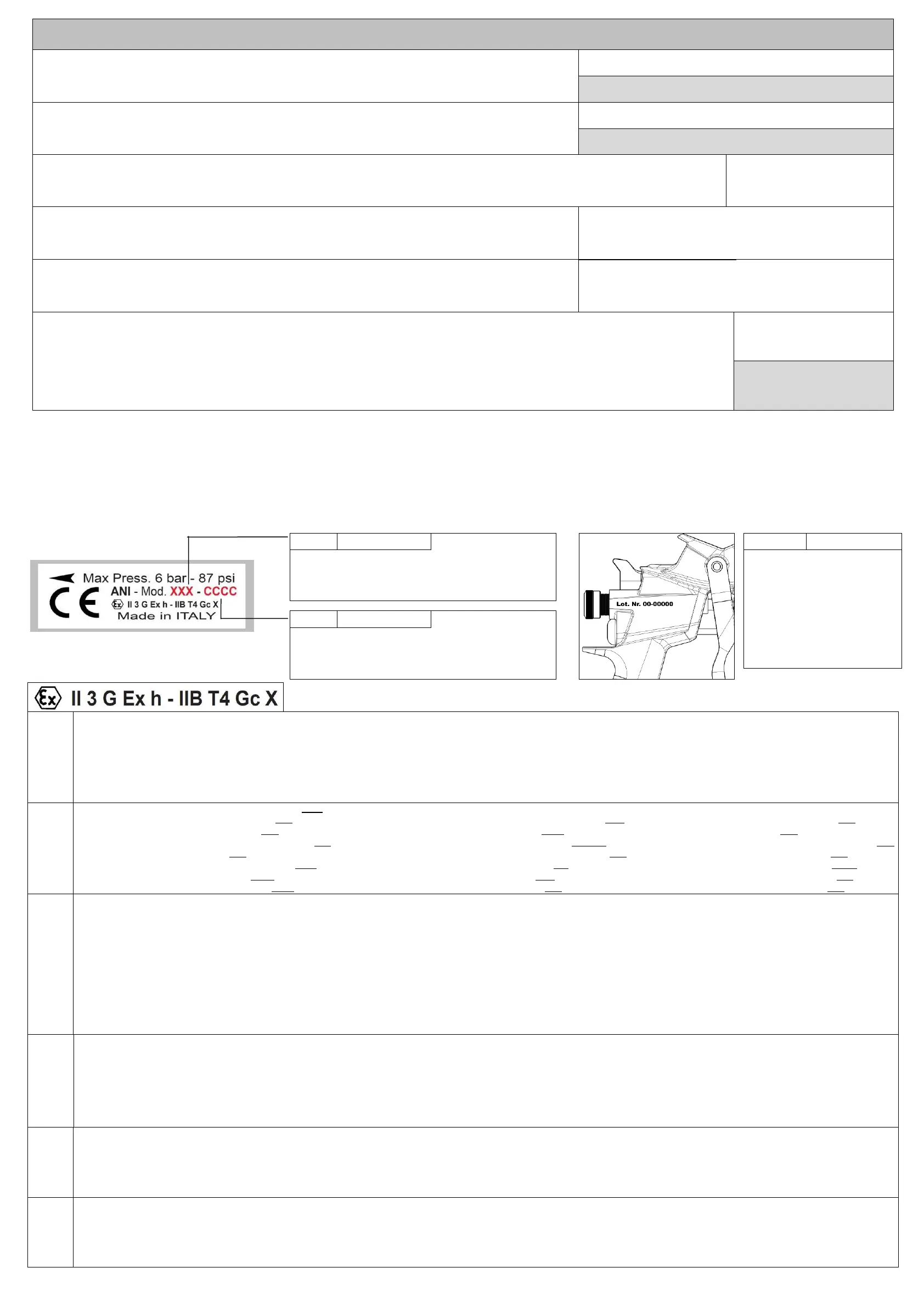 Les normes EN 80079-36 et EN 80079-37ont été appliquées. Le produit a été conçu selon le critère de protection c indiqué dans la Norme EN 80079-37. Se han aplicado las Normas EN 80079-36 y EN 80079-37. El producto está diseñado de acuerdo con el criterio de protección y de conformidad con la Norma EN 80079-37.