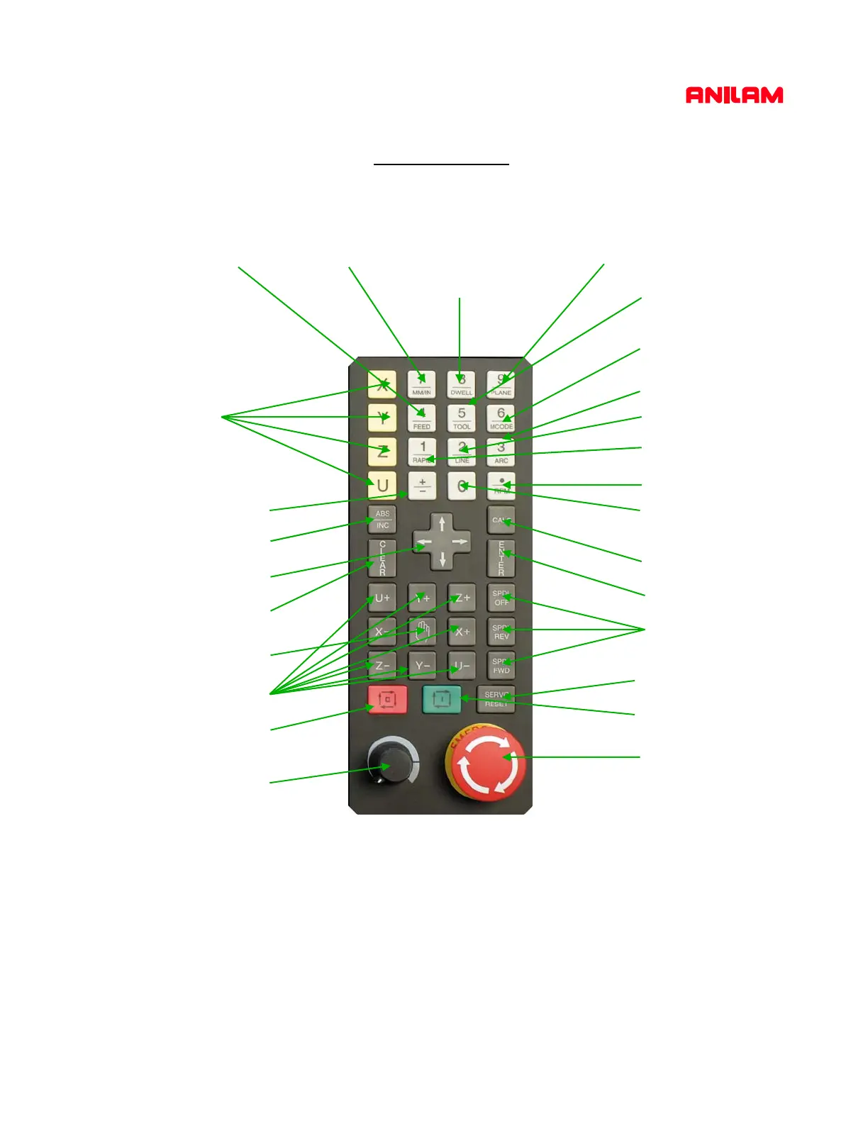 Anilam 3300M - ANILAM CNC Control Keyboard; Axis, Jog, and Movement Control Keys; Numeric, Input, and Special Function Keys