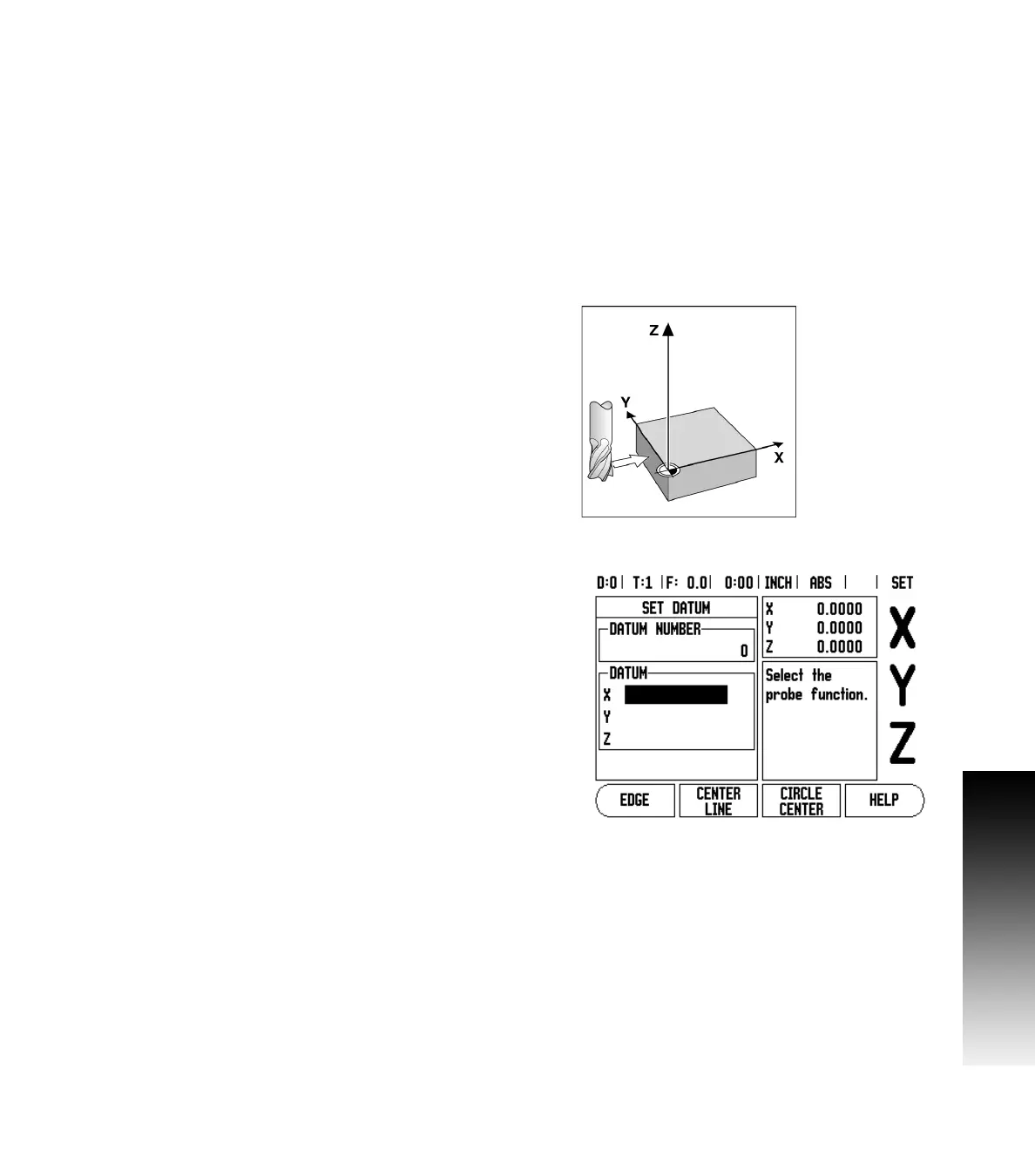 Example: Probe workpiece edge and set edge as datum