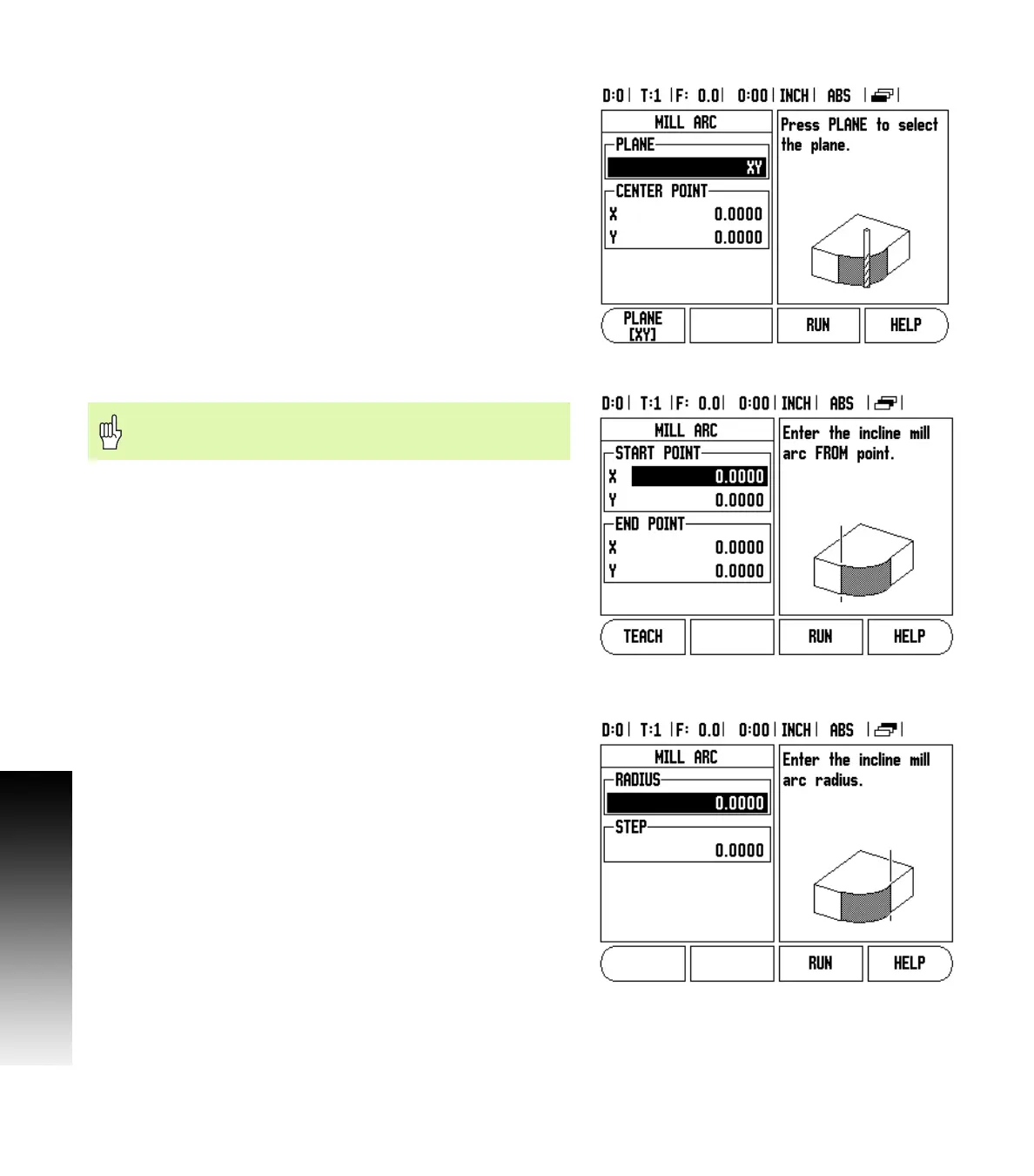 Press the ARC MILLING hard key to open the form.