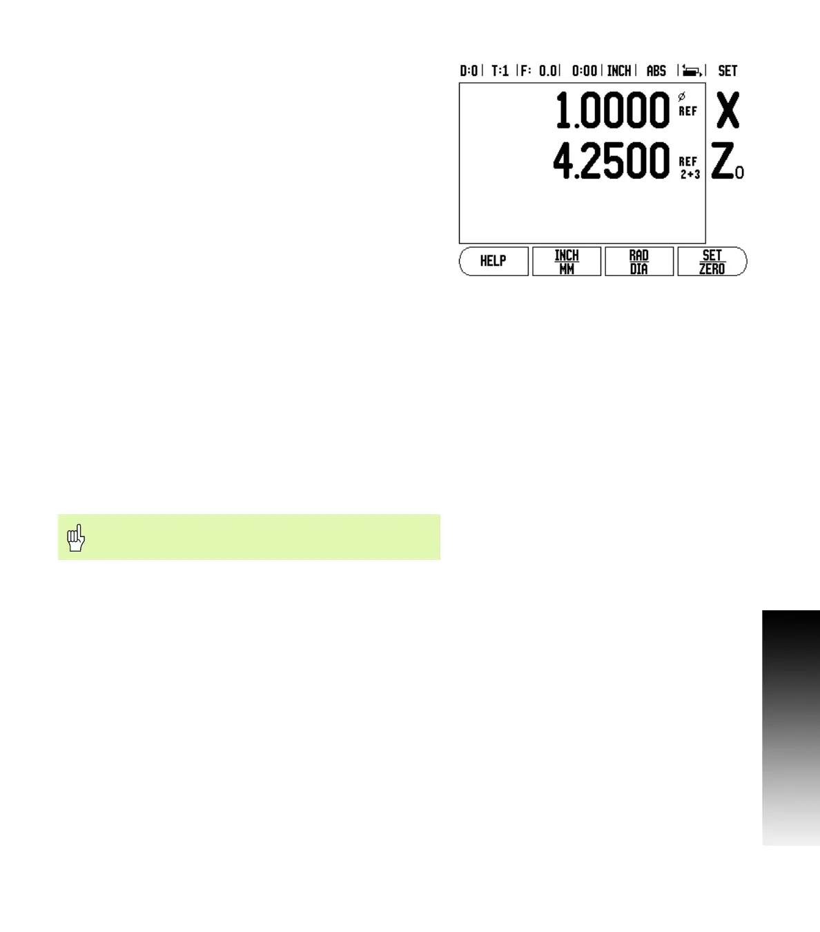 To disable Z Coupling, press the axis key of the display that is blank.