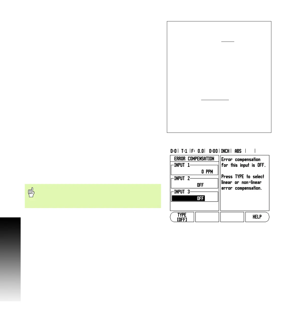 directly. Press the TYPE soft key to select LINEAR compensation.