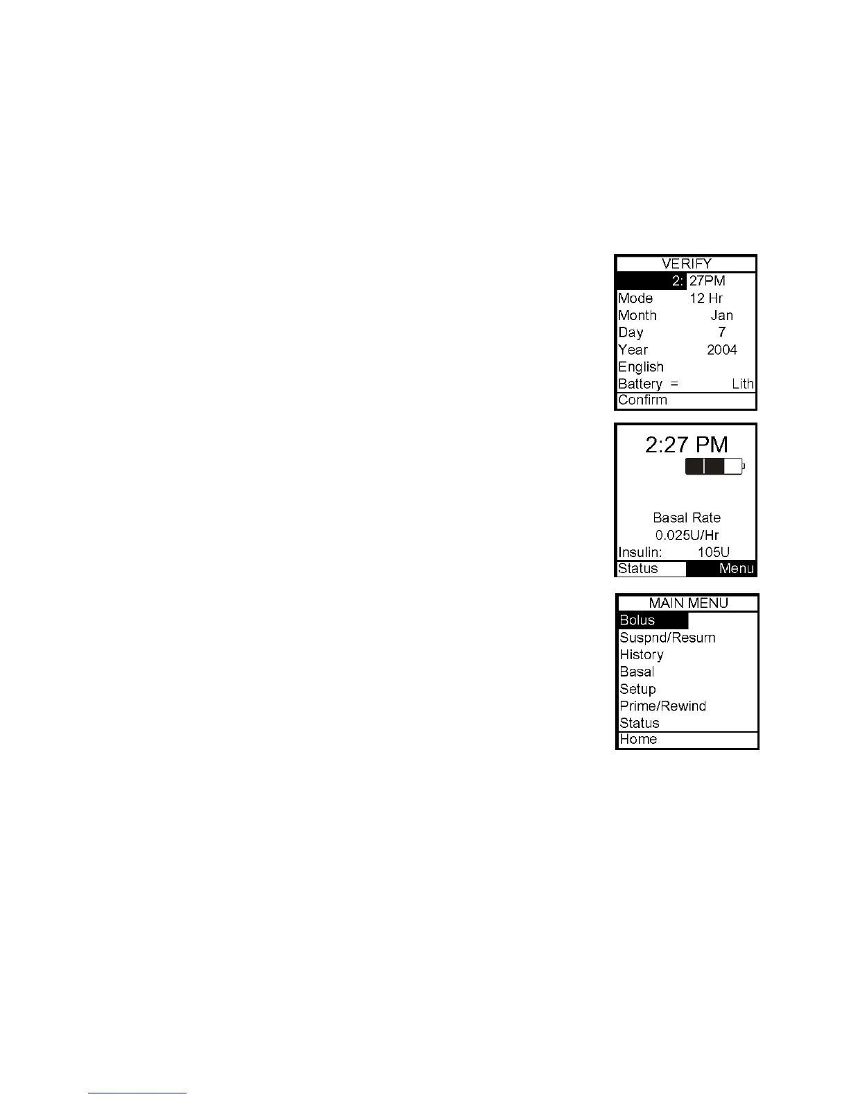that is displayed when you “wake up” your pump. Press any button to