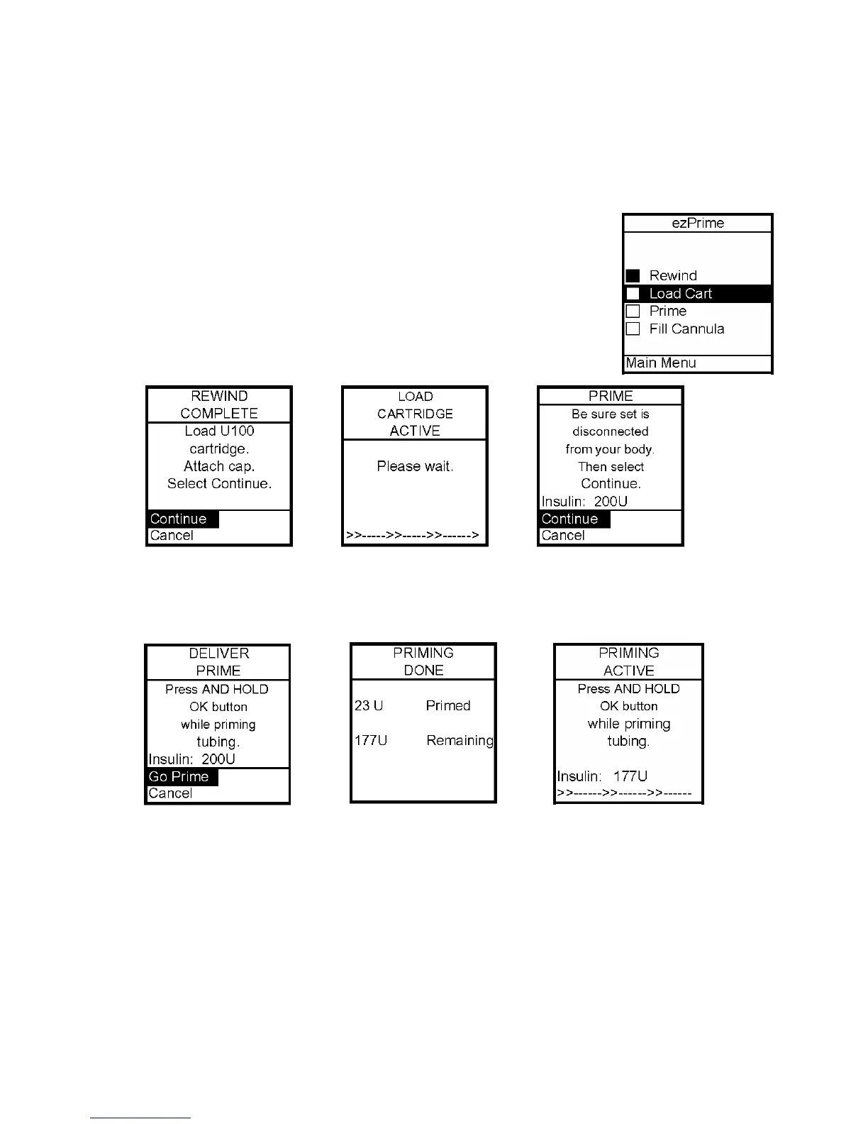 followed by the Prime screen. The pump will beep once to let you know the cartridge is