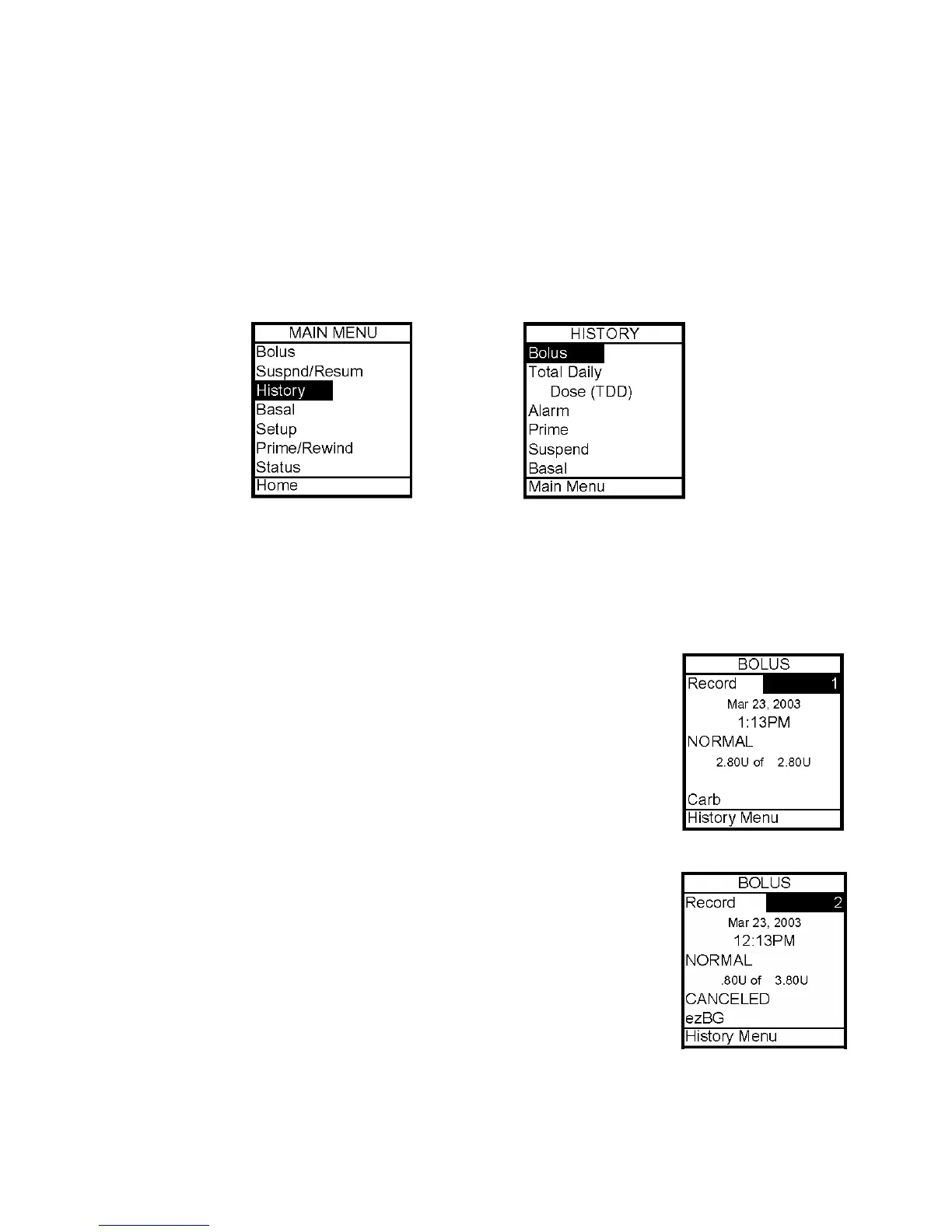 The pump stores these records indefinitely, even when batteries are removed. The pump