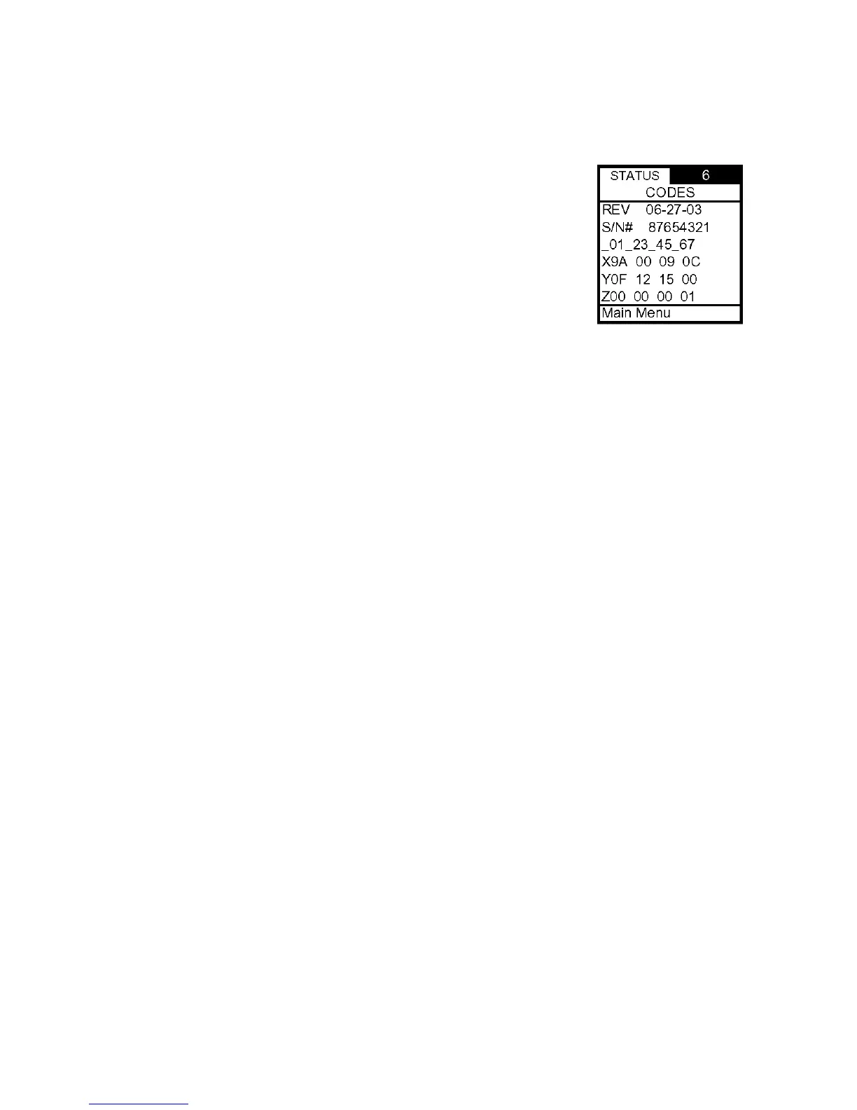 The cursor is flashing on the Status Screen number 6. Press OK to highlight Main Menu and