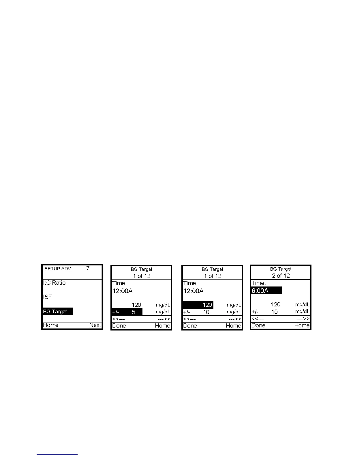10. Scroll to the BG Target field. Press OK to change to flashing cursor for Edit mode.