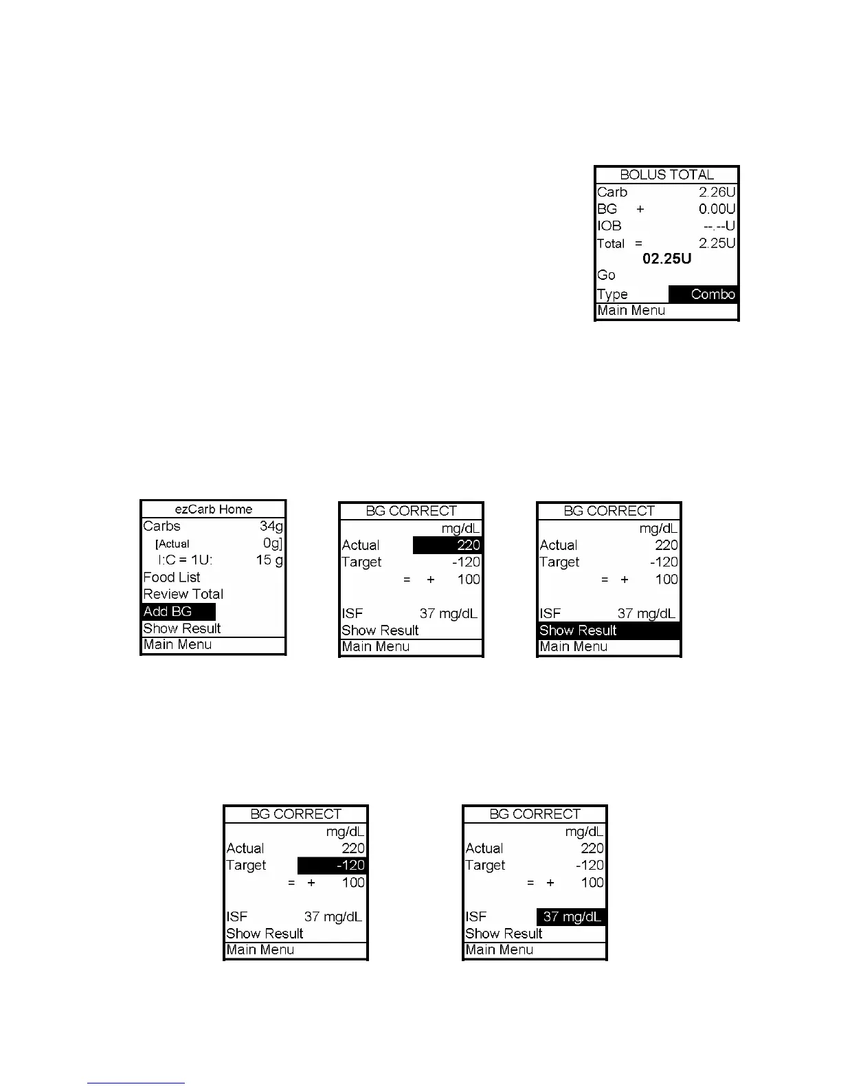 Note: If you select the Combo Bolus option, the Combo Bolus menu