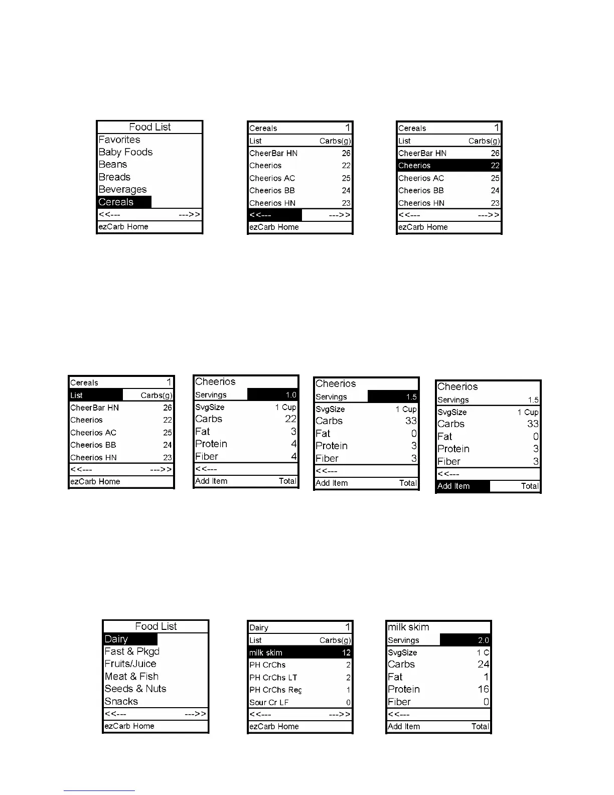 Note: To return to the Food List to select a different category, scroll up to highlight List and