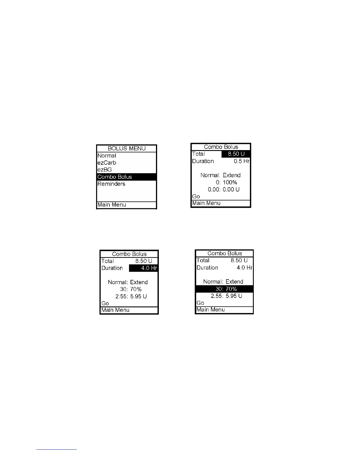 1. From the Bolus Menu, select Combo Bolus.