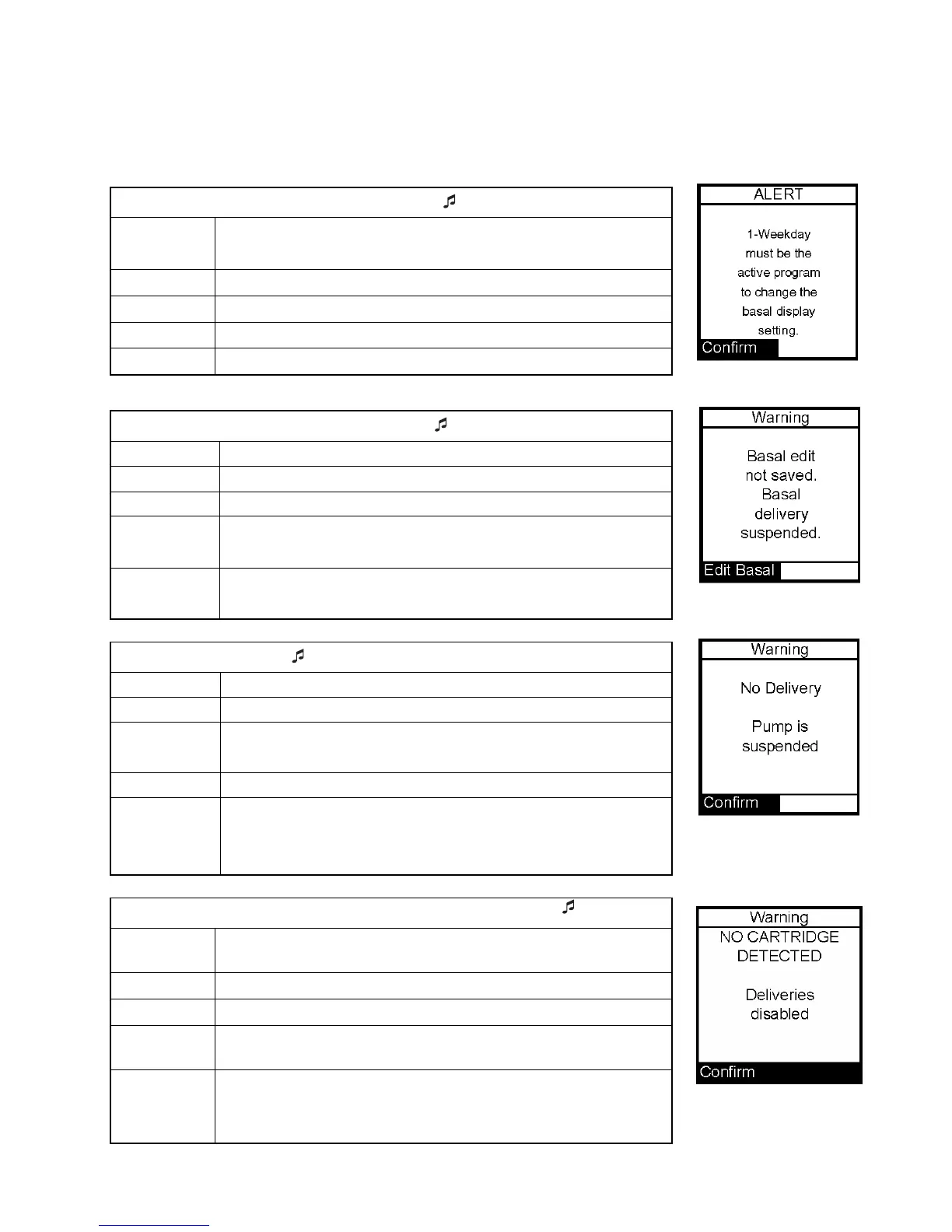 Message Displayed until confirmed or until pump goes to sleep.