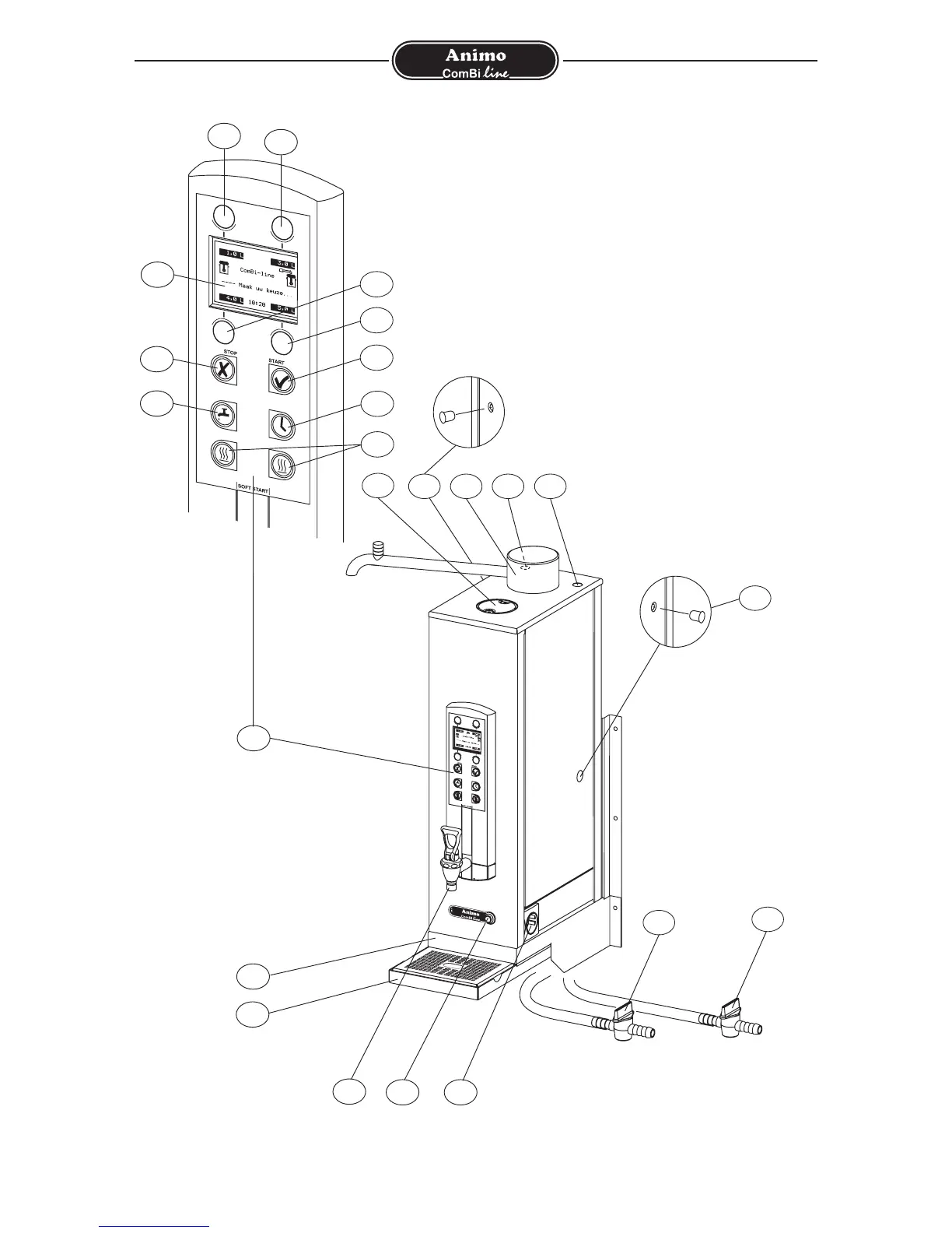 Animo CB 5W - Appliance Component Identification; Control Panel Components; Hot Water and Draining System Parts