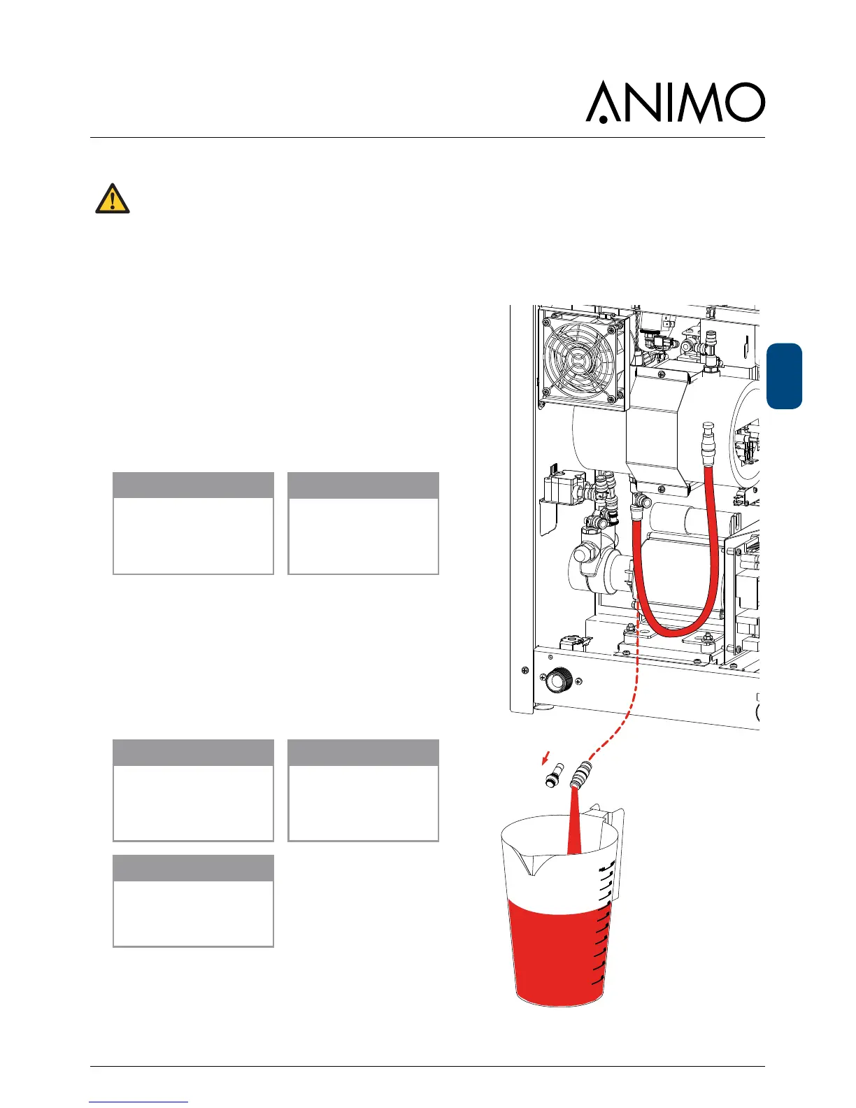 the boiler drain into an empty tray (approx. 1.5 litres).