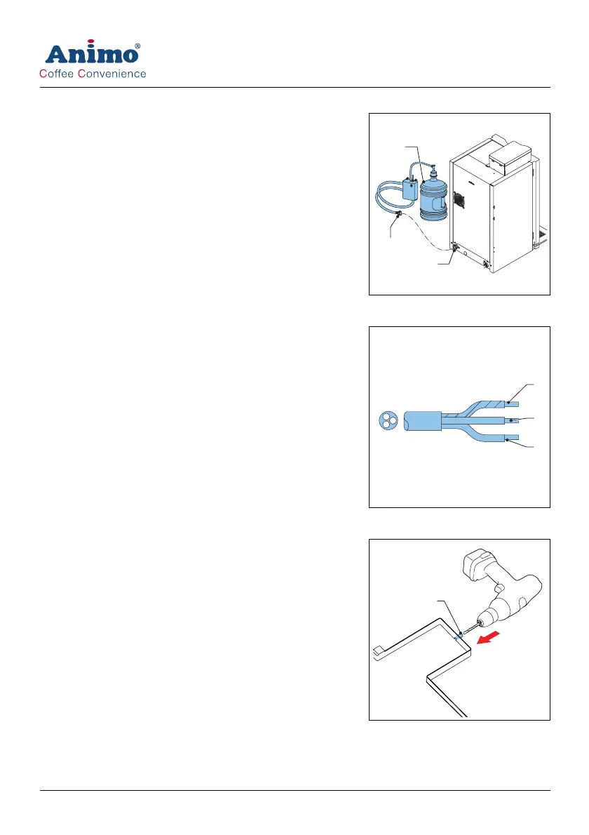 1 Open the drip tray discharge (A) with a drill (Ø 6 mm).