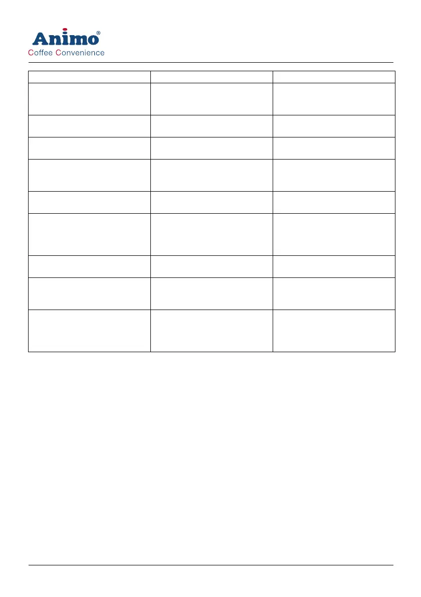 E22 Brew timeout Brewer process too long Switch the machine on and off.