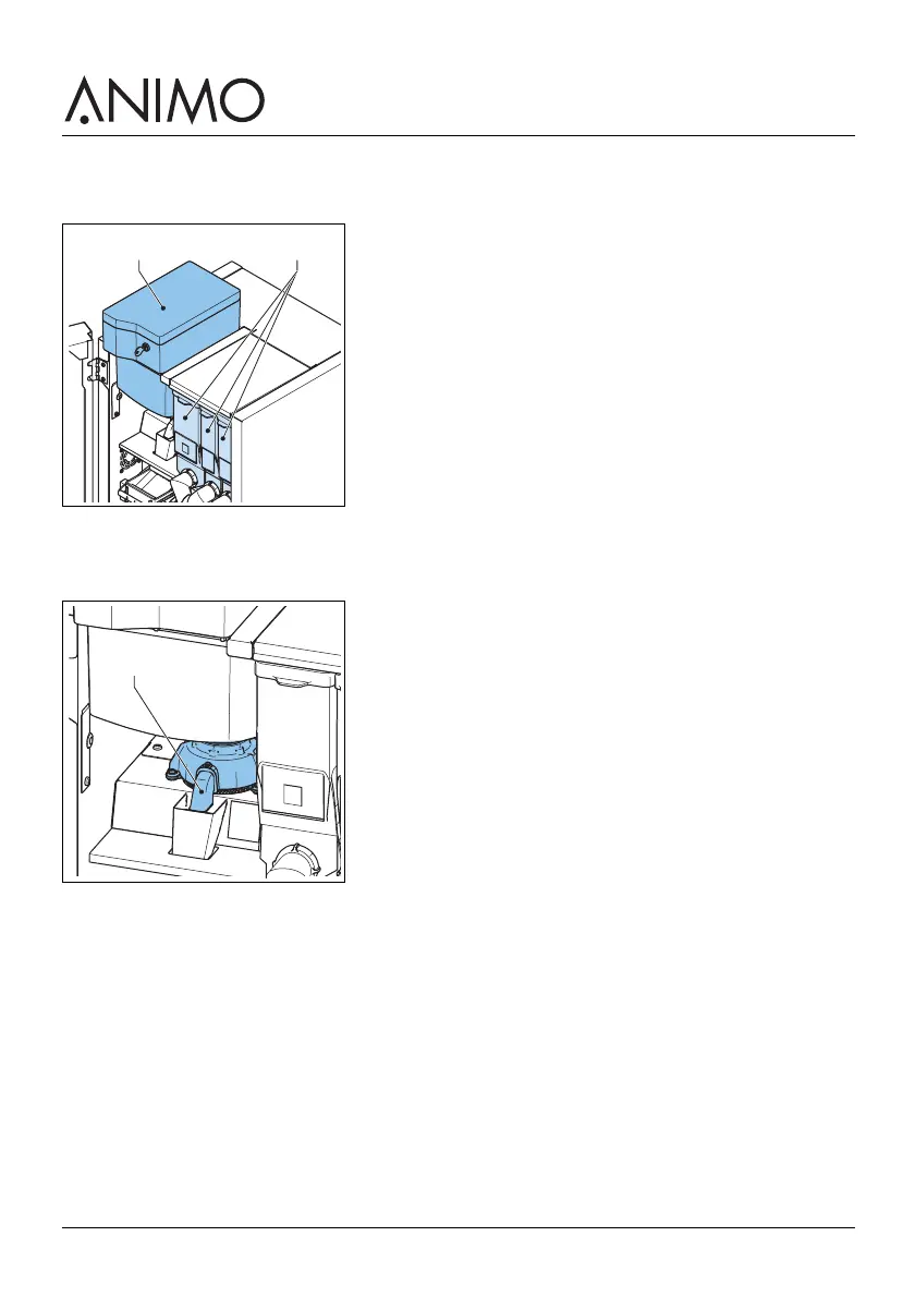 The grinder (A) grinds the coffee beans and transfers the product to the brewer.