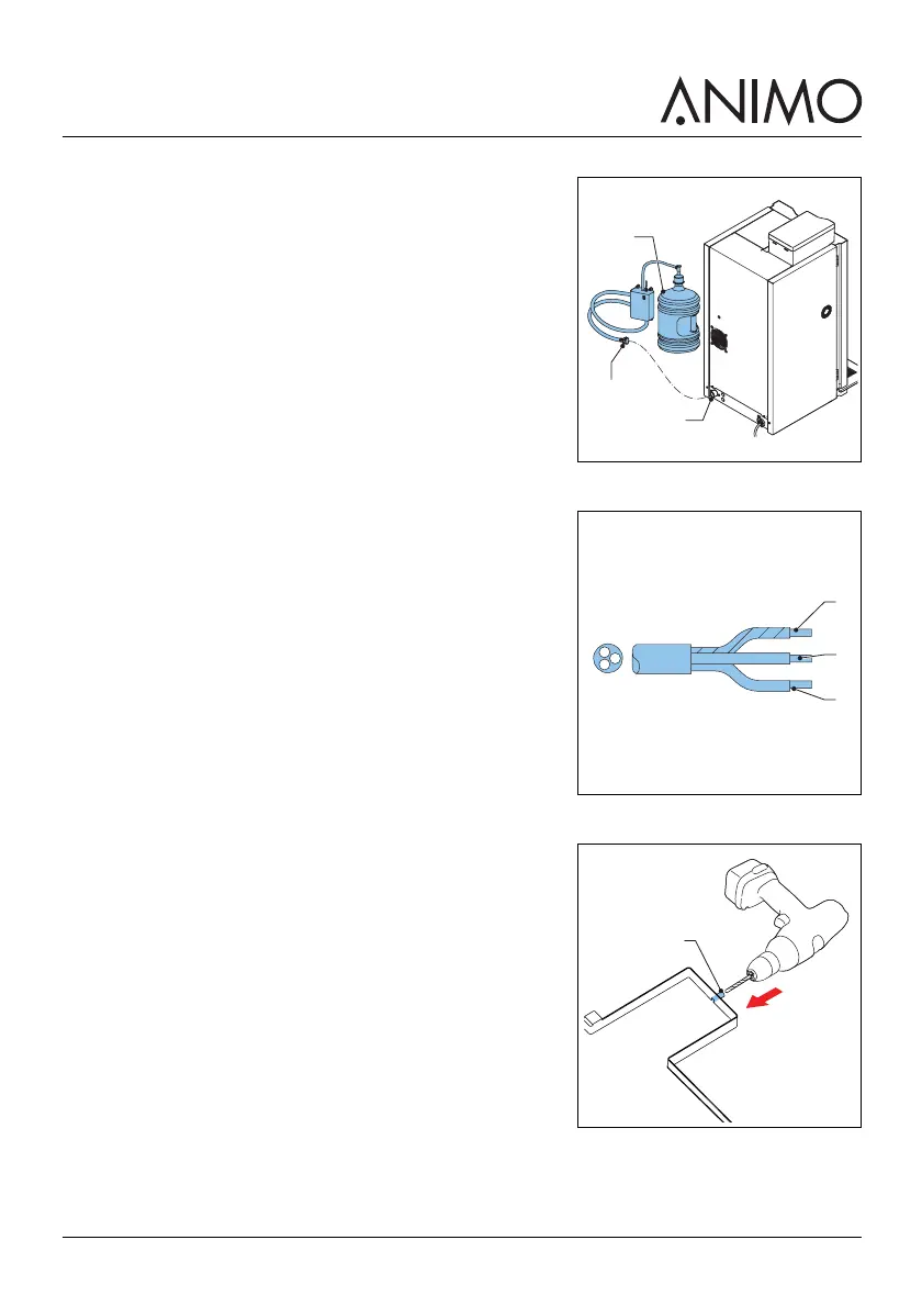 1 Open the drip tray discharge (A) with a drill (Ø 6 mm).