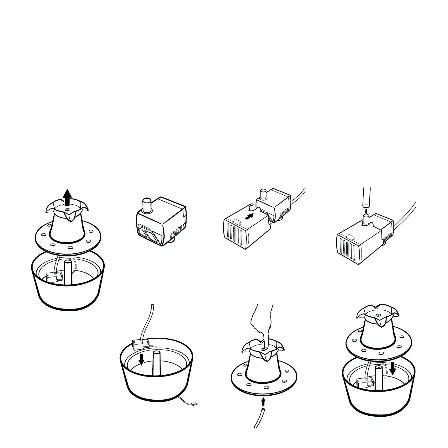 Før pumpens strømkabel igennem det cylindriske hul i underskålen, og sæt gummiafdækningen på.
