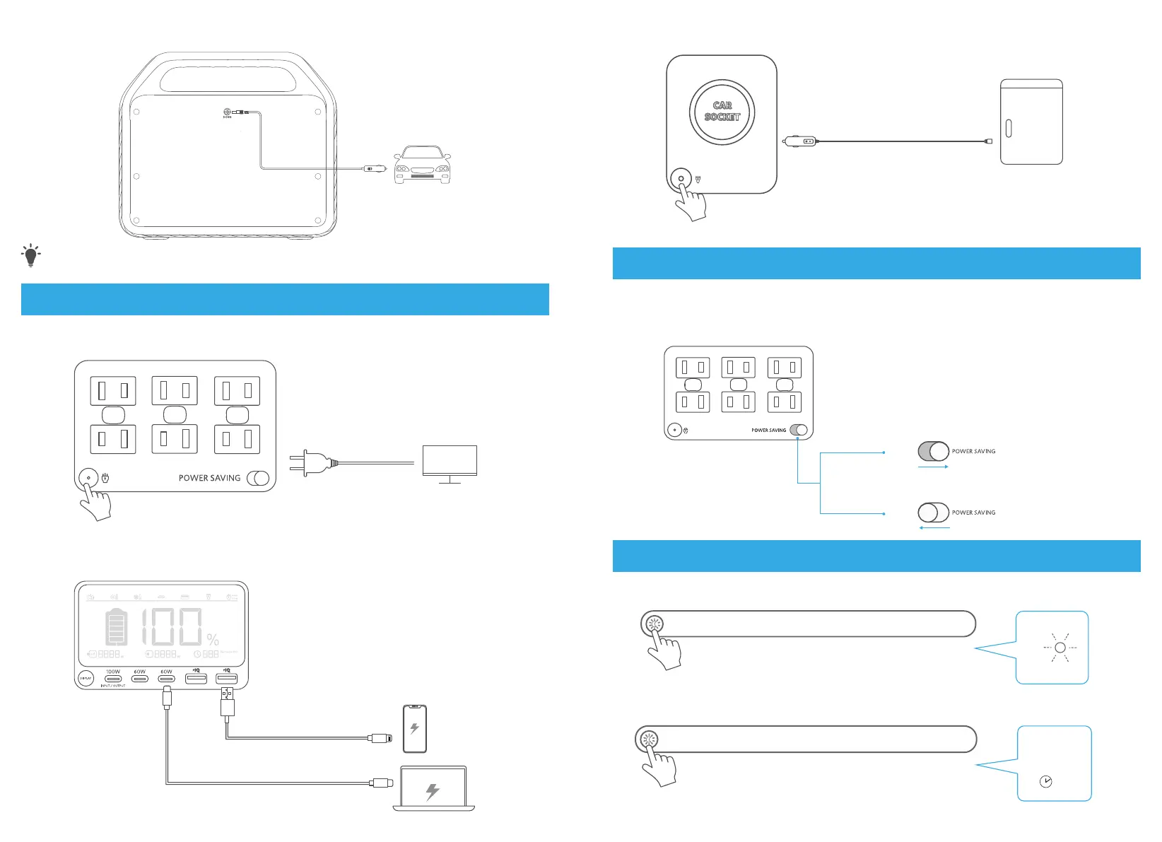 Switching on the power saving mode prevents wasting power by automatically turning o the Power Station