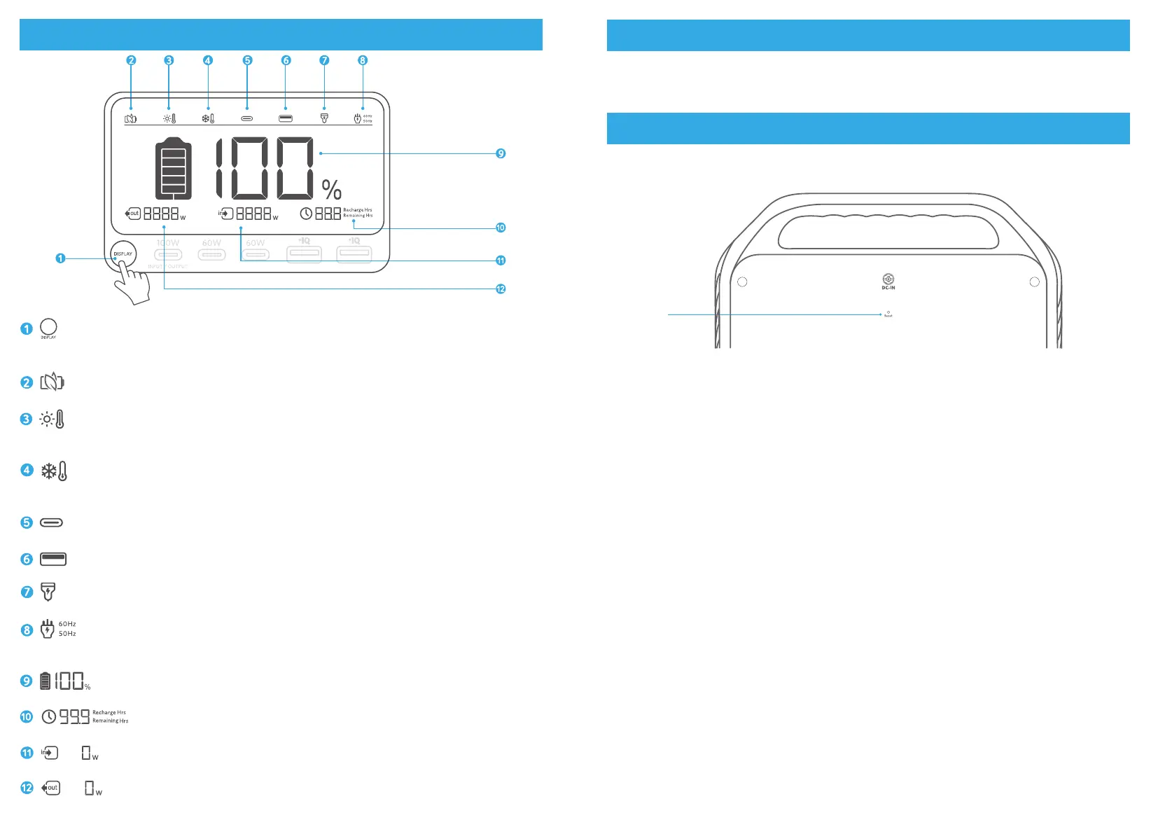 Press the AC output port on/o button for 2 seconds to switch the frequency.