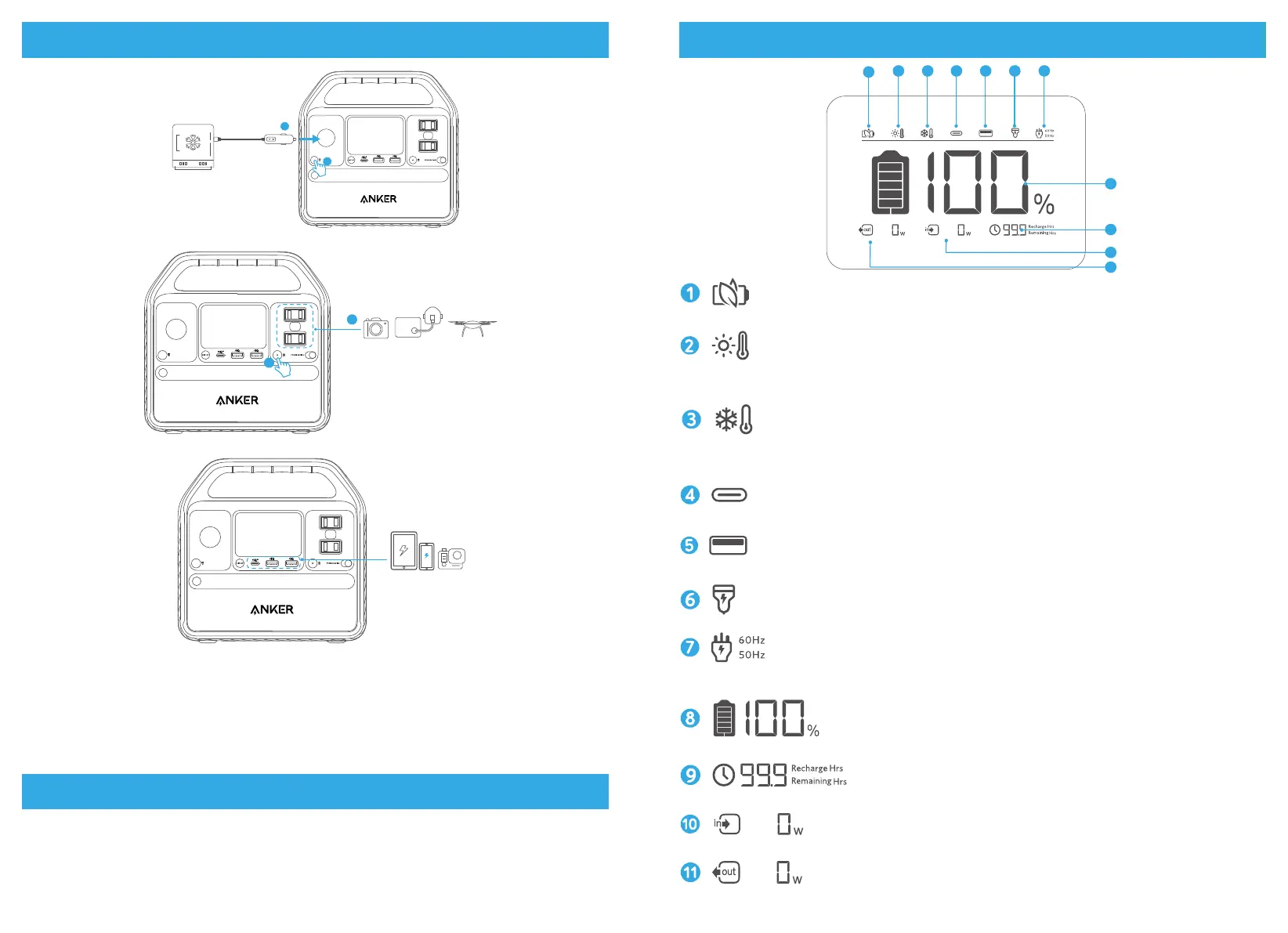 1.USB-A および USB-C ポートに機器を接続すると、自動的に充電を開始します。機器を取り外
